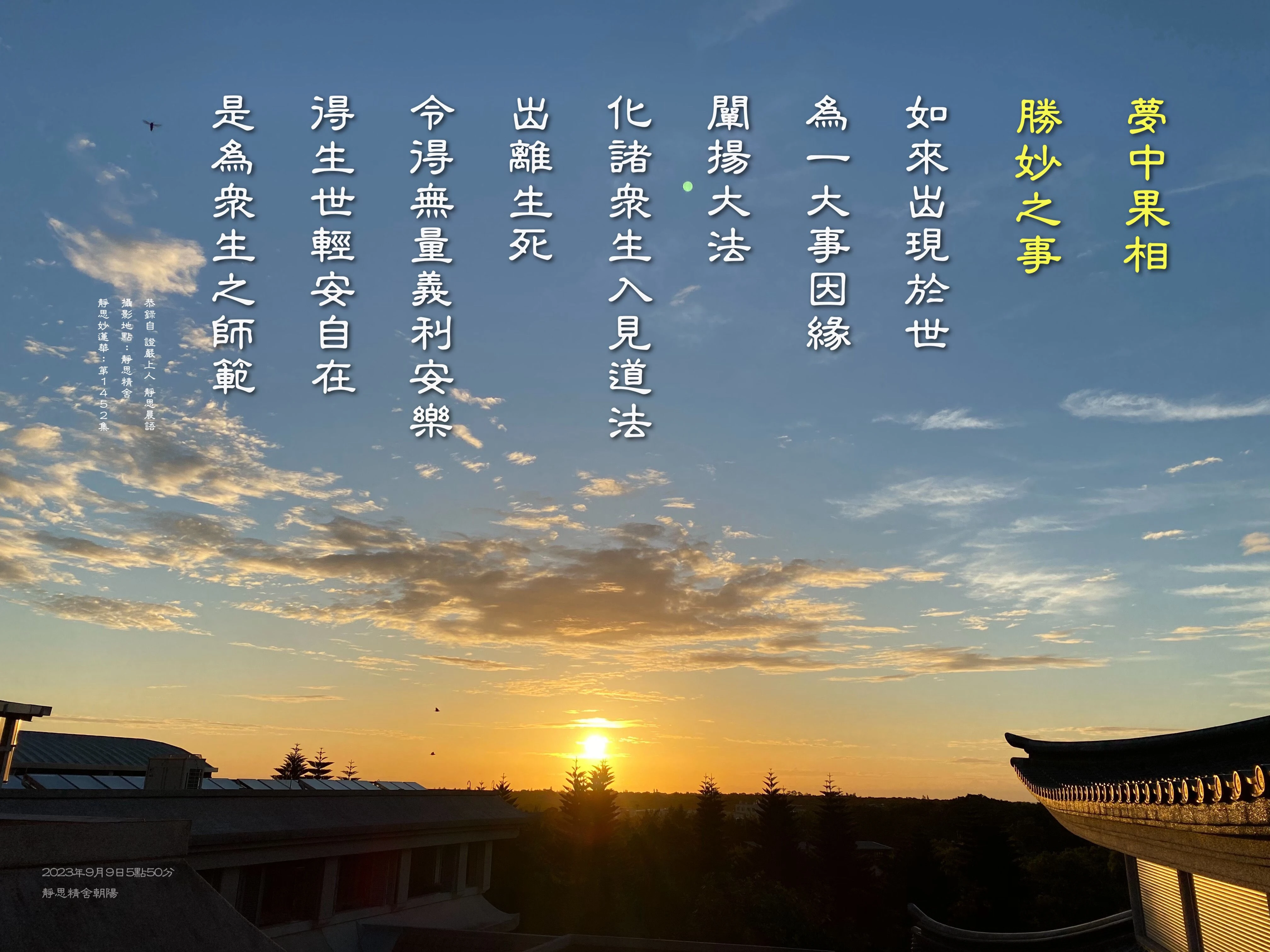 記得2016年時,回精舍結集「靜思法髓妙蓮華」。晚上一位從大陸蘇州回來的法親家人,剛安單完畢,就拿出兩本《無量義經》詢問我,經文的字有微小差異(意涵是很接近的),哪個才是對的?我跟她略略說明,是版本的不同。