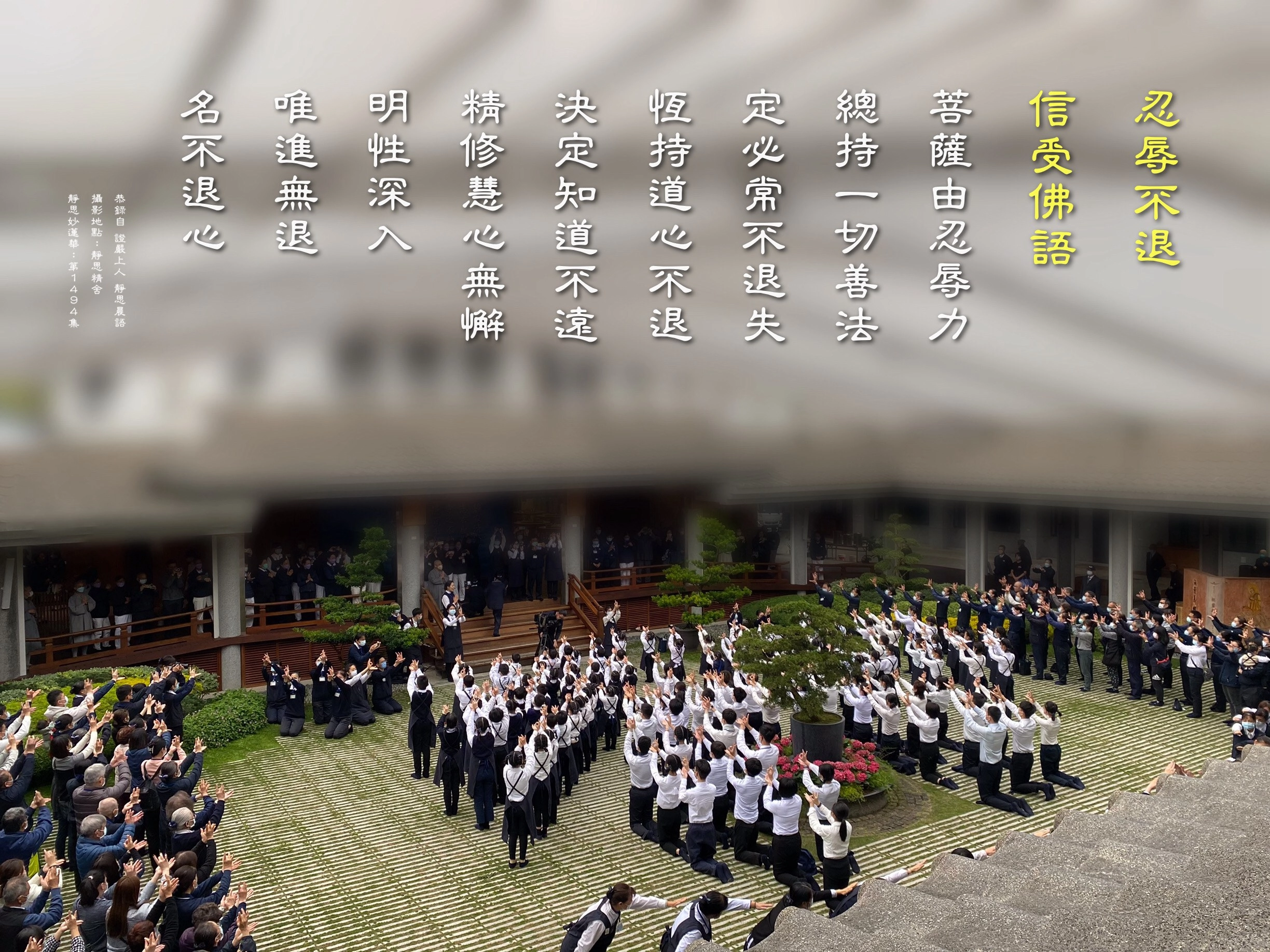4.我們要「總持一切善法」,我們才能夠「定必常不退失」。路你要走下去,你才不會又有退轉的心,因為在走,身體力行,我們的體會才能深。對這段上人的開示,您有何體會?