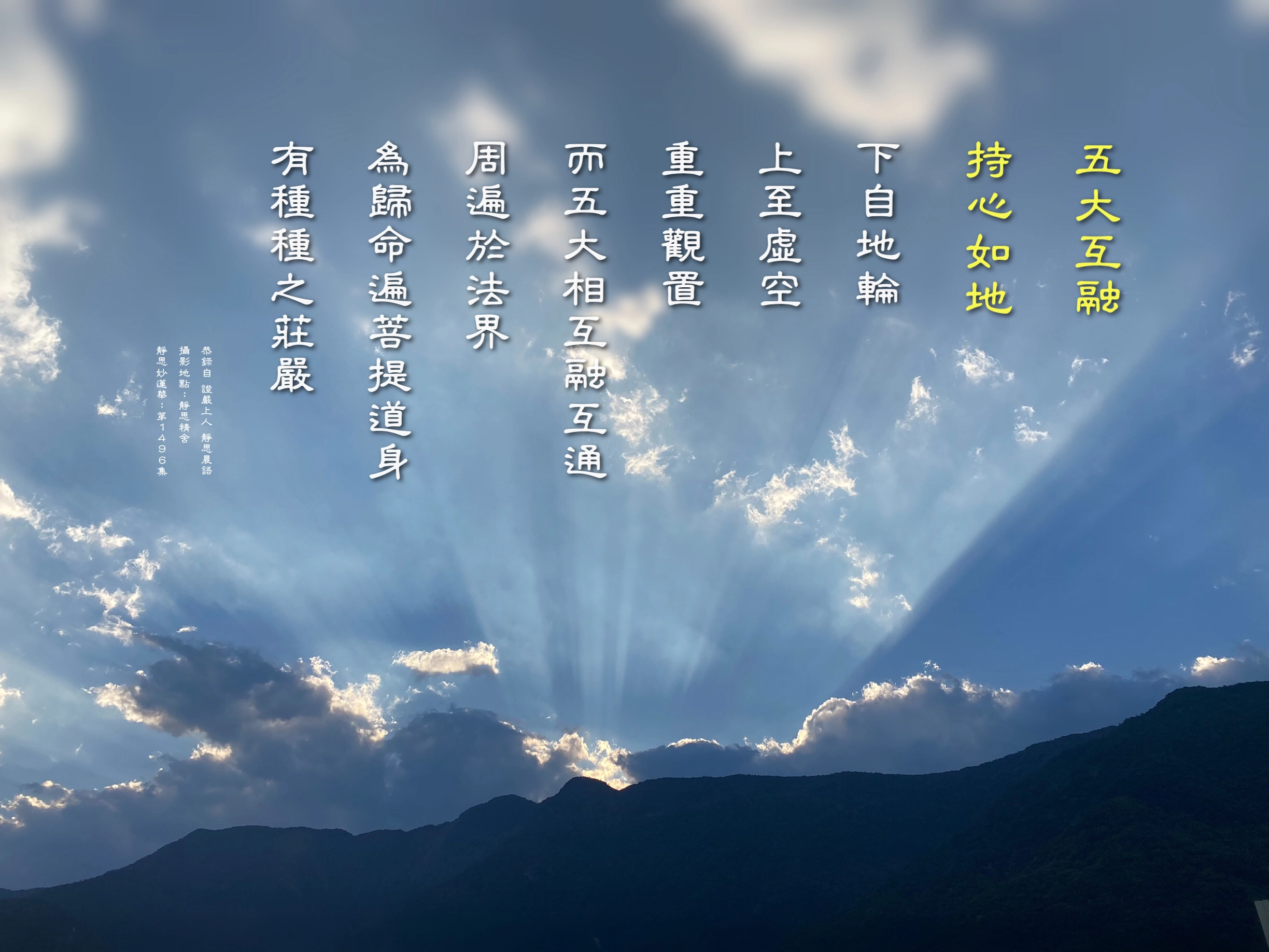 上人曾以心地乾燥,風一吹,就揚塵,煙蓬蓬,譬喻人的心田需要法水的滋潤。修學佛法,需要善友,善友相聚,談的是法,不說是非,彼此在法上增益,能讓自己觸類旁通,特別是這位善友,已能感受到法無所不在,這樣,對自己於法上的理解,更有莫大的幫助。