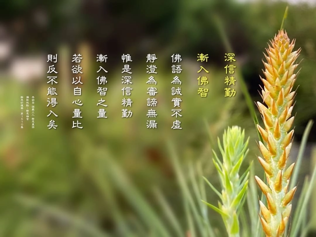 「惟是深信精勤」。因為我們是凡夫,我們要學佛,唯一的辦法要深信、精勤,我們要心要很精、我們要很殷勤,才有辦法接觸到的知識轉為我們的智慧。我們一定要深信法、要很認真,才能夠在我們的生活中與道理不斷不斷契合著,這樣就是「無漏」。
