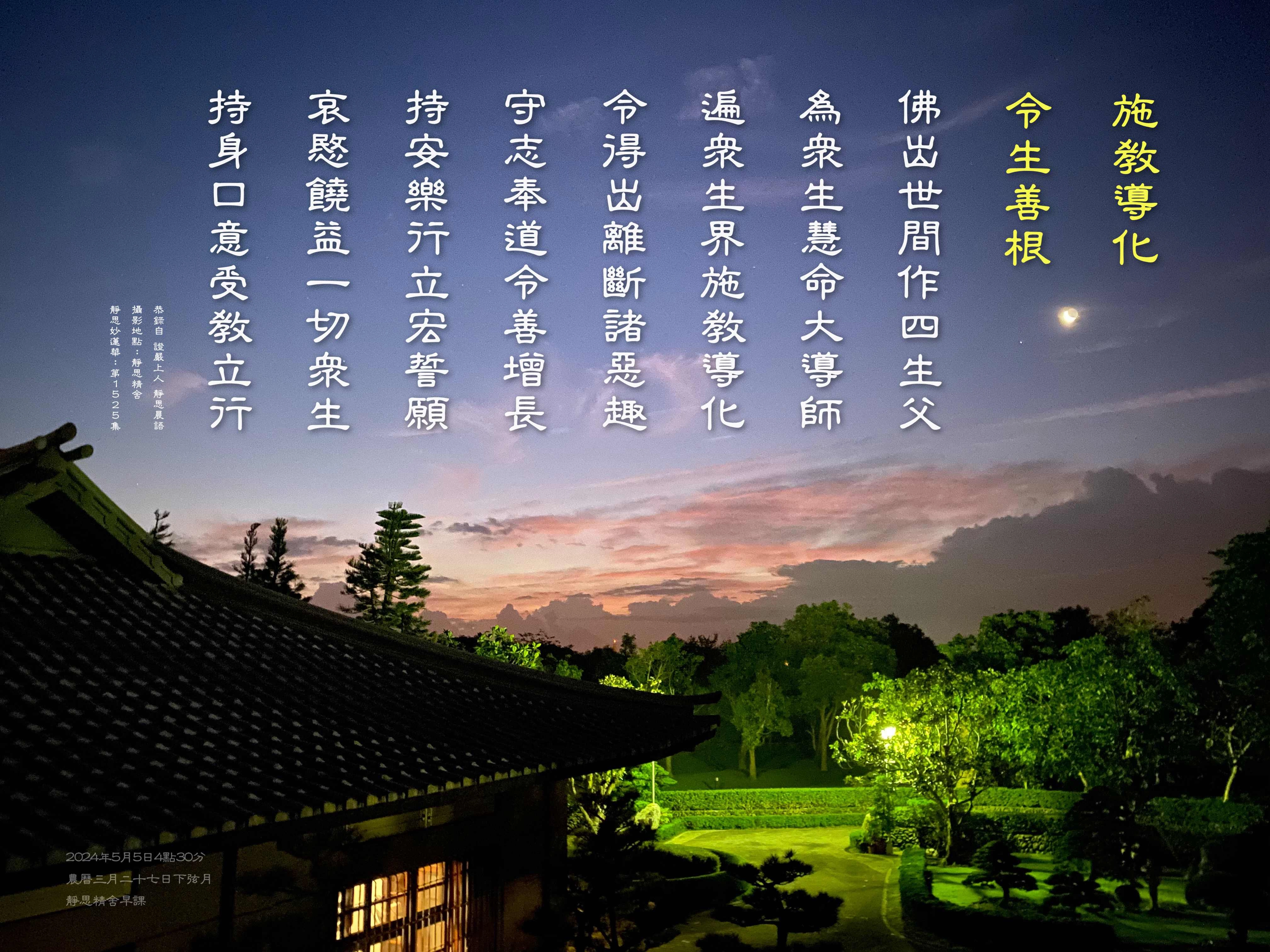 4.「守志奉道令善增長」,愈做愈歡喜。「持安樂行立宏誓願」,不斷不斷再投入。您有否從中感受到幸福?