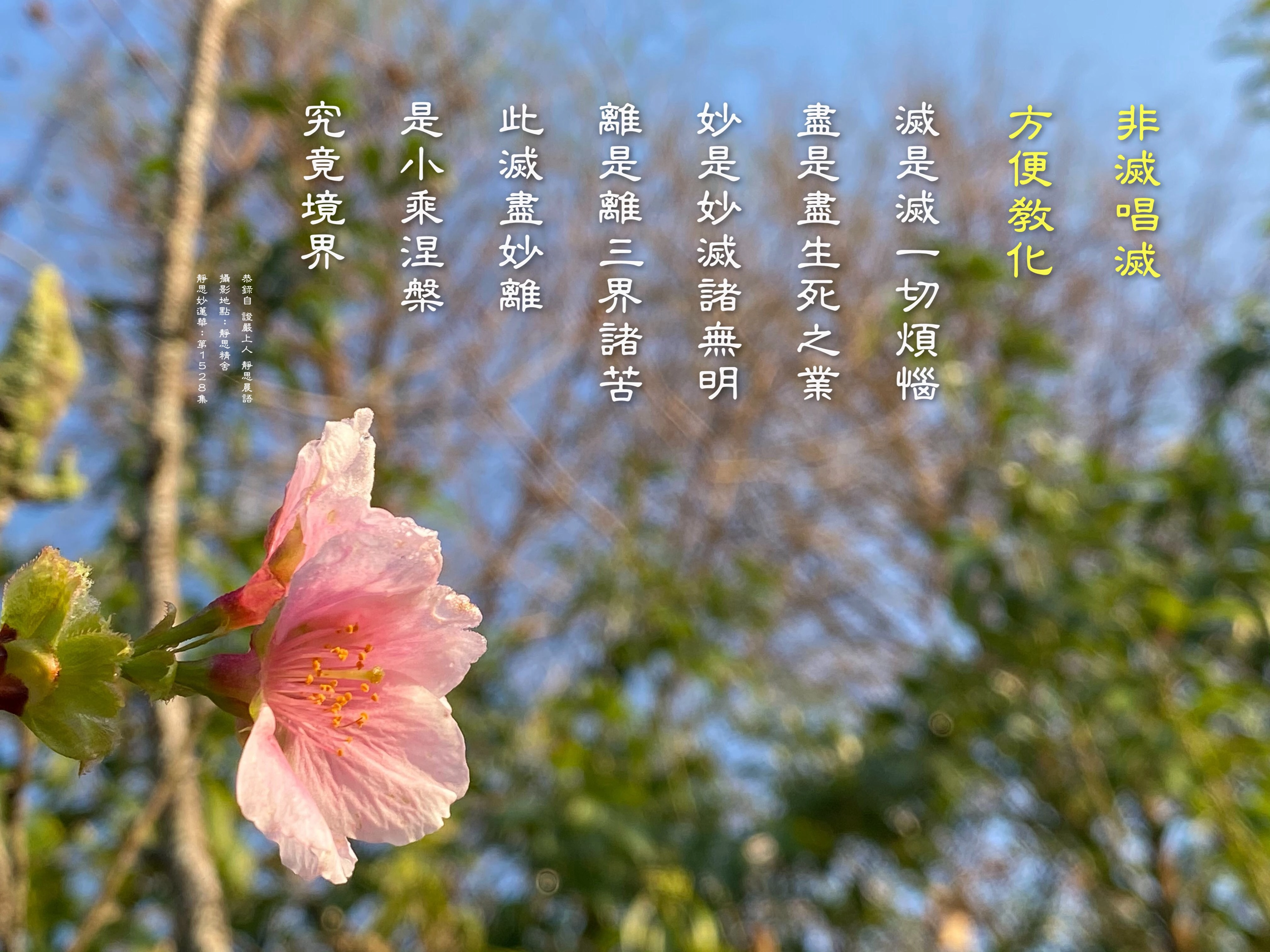 「滅是滅一切煩惱,盡是盡生死之業,妙是妙滅諸無明,離是離三界諸苦。此滅盡妙離,是小乘涅槃究竟境界。」