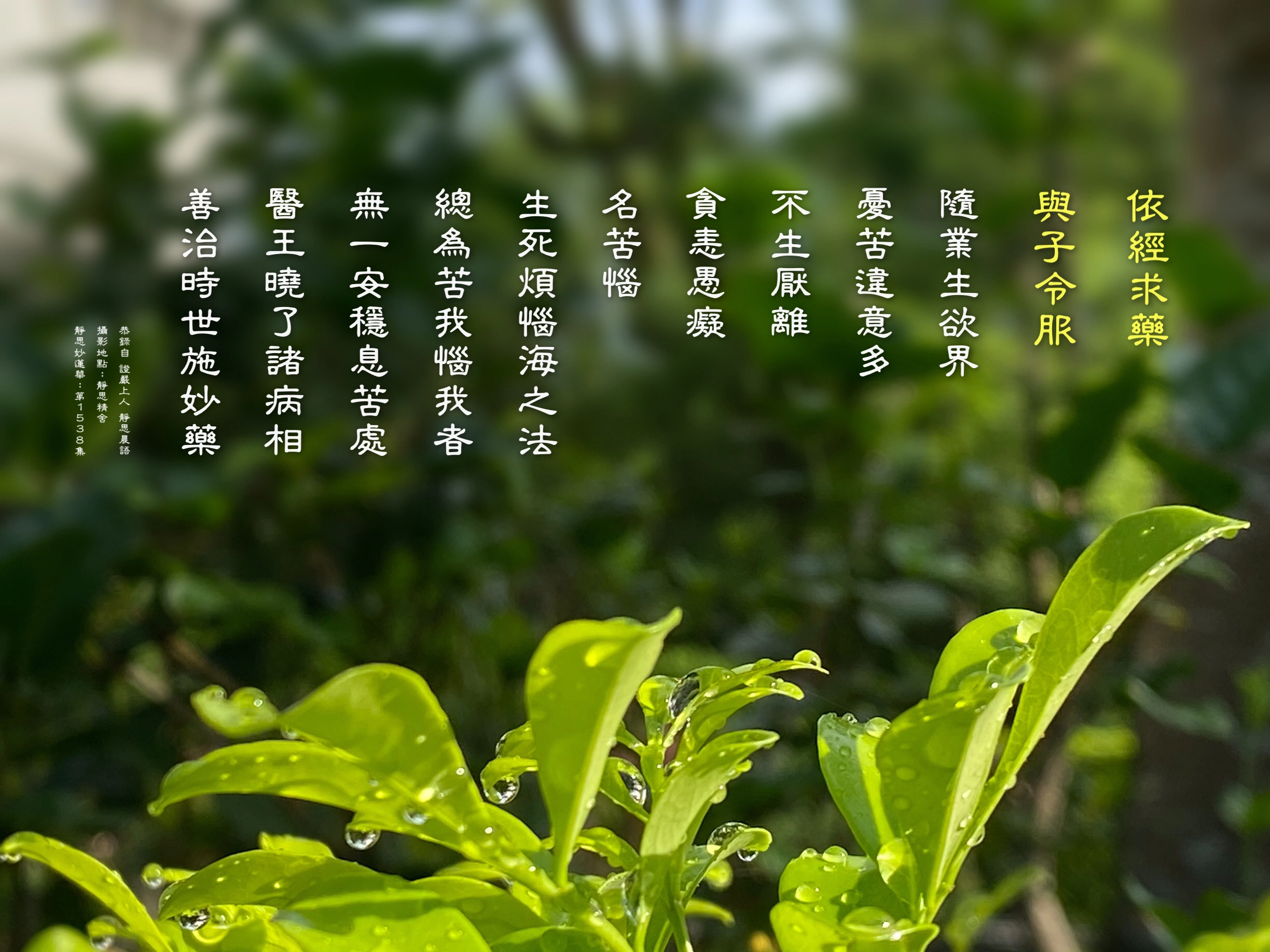 唯有大醫王,「曉了病相」,能夠知道時機,能夠知道世間的生態,用他的法,我們用在生活中,來對治這種讓我們苦惱的緣由,我們要很用心。