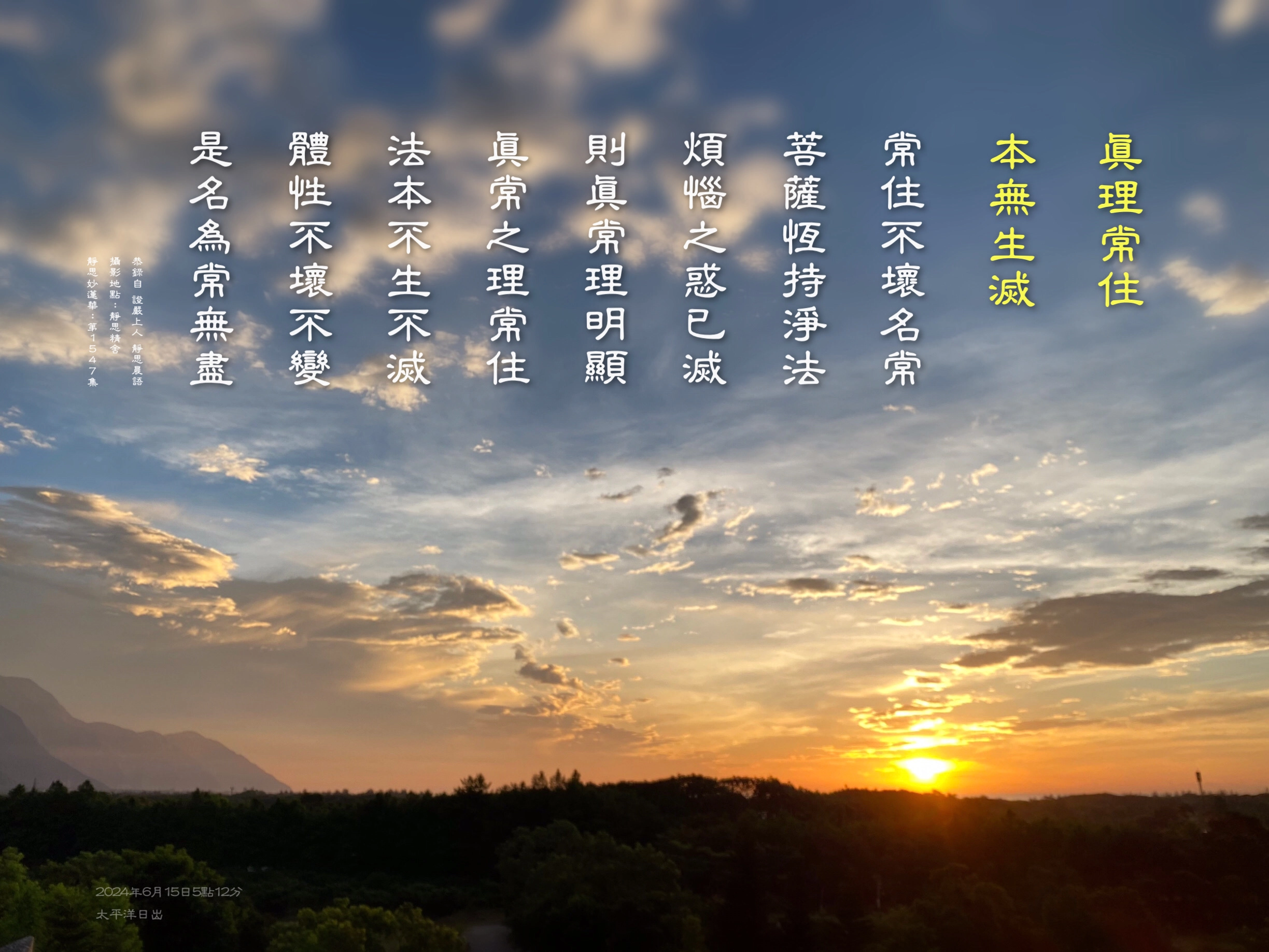 道理在人間,什麼時候生?什麼時候滅?我們都看不到,所以「本不生不滅」。我們只能夠體會到,道理就是這樣,「諸惡莫作,眾善奉行」。