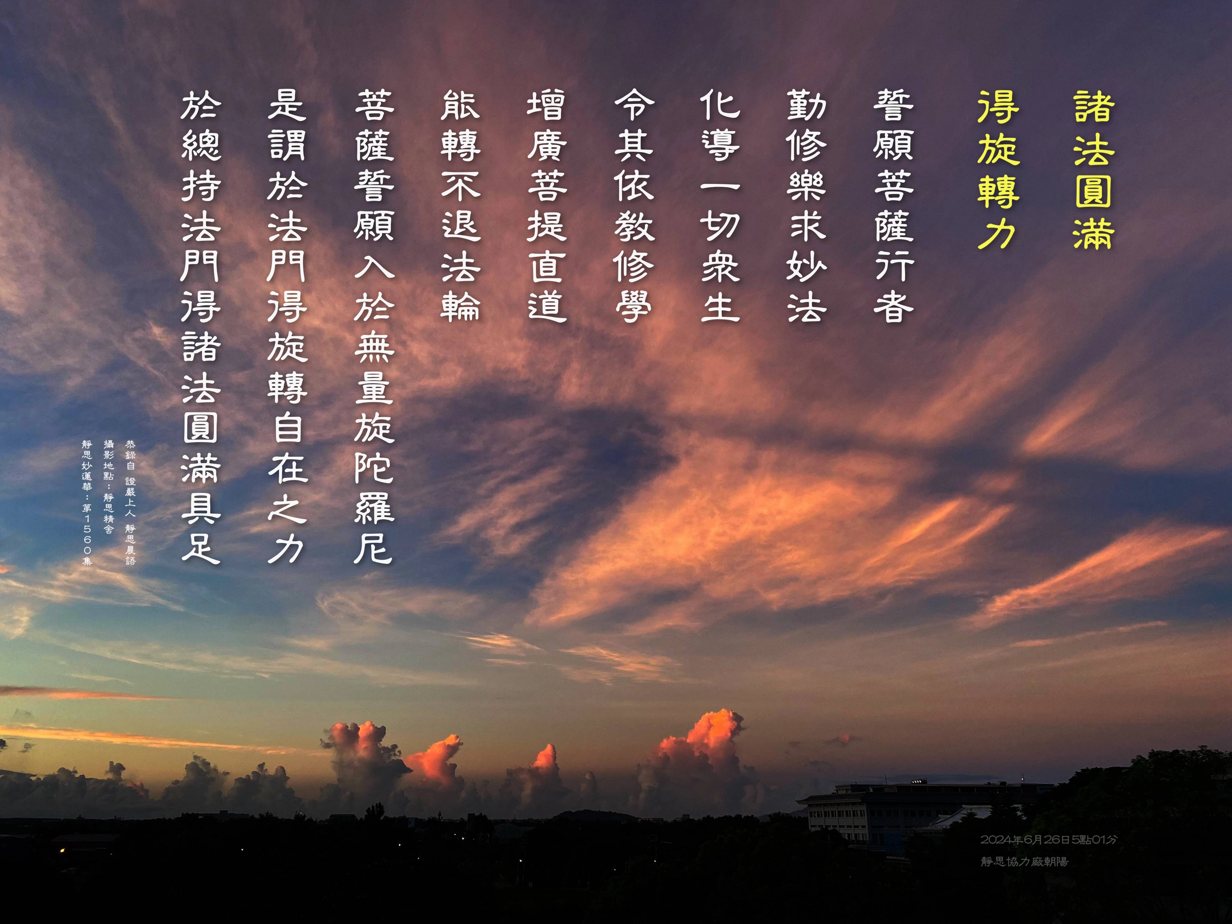 「旋」就是轉法;「陀羅尼」就是「總持」。我們求法,已經入法門來了,這叫做「總持門」。我們全都知道了解,得到法我們就要轉,要轉法輪,所以叫做「旋陀羅尼」。