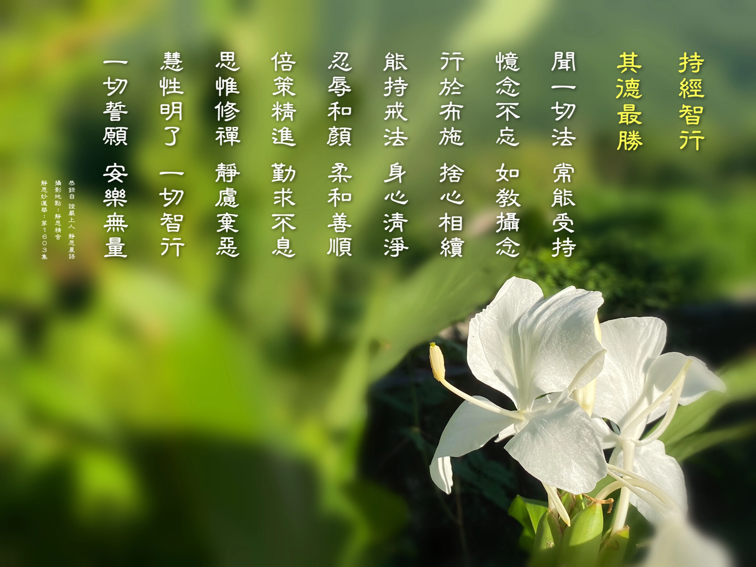 因為,我們自己有修行是自己得,修功積德。所以,我們要「倍策精進,勤求不息」。我們要把握時間、利用生命,做在精進、結善緣,為未來生積道糧。