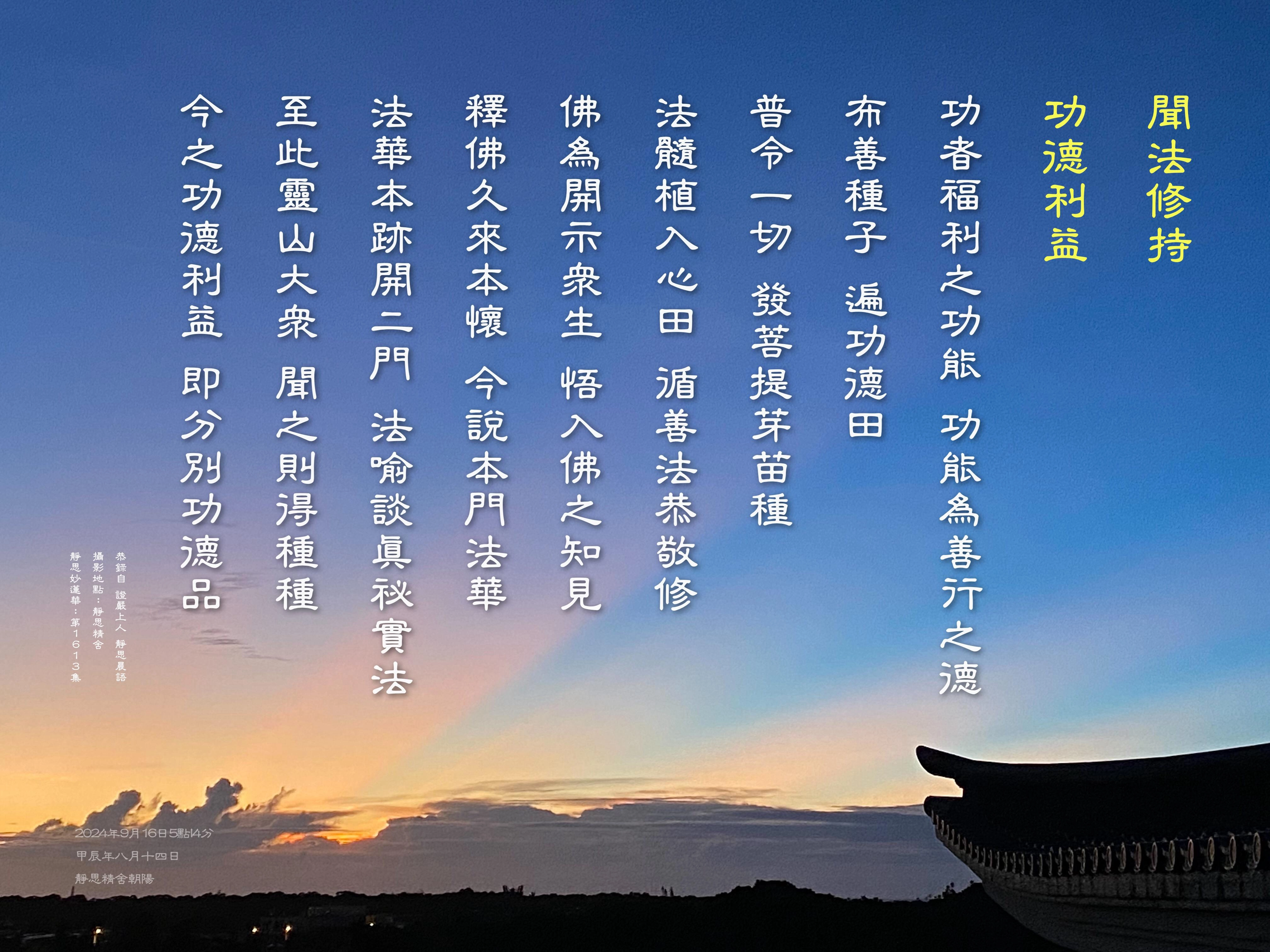 要身體力行,造福人群。「功」就是不斷一直積起來,從點滴而積到多數,這樣叫做功德。要自己有這個本能去付出,才是積功累德。
