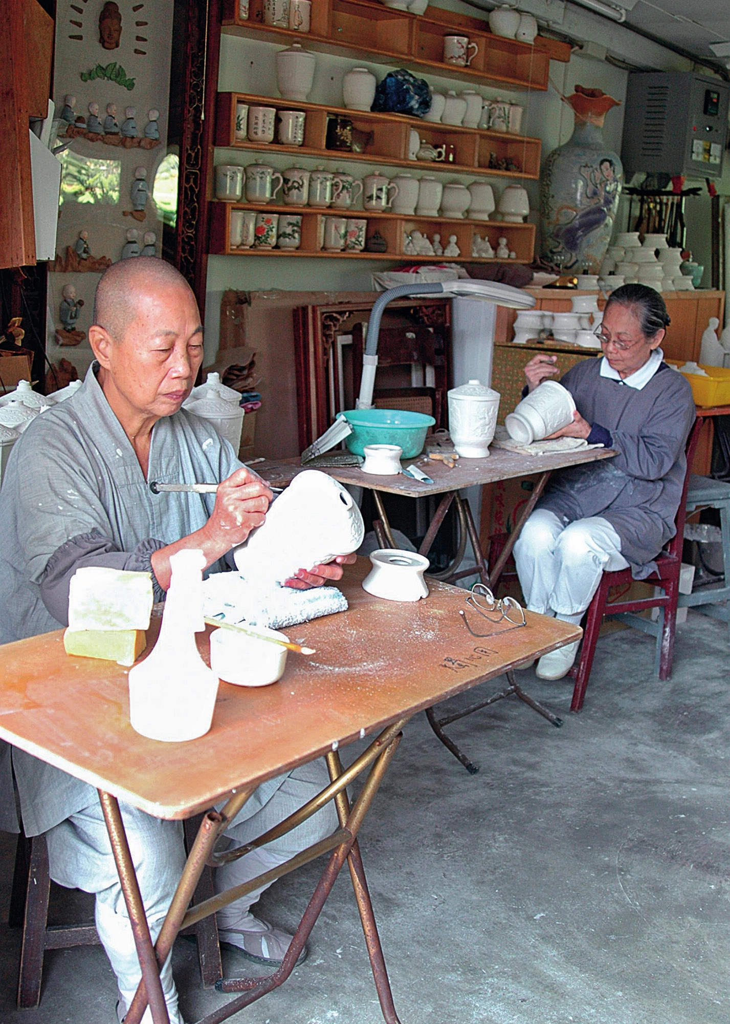 同行師姊便向慈師父介紹︰「她是藥師,也很會做陶、繪圖,還寫文章出版書籍。她的藥局星期六下午有陶藝治療,我有一次好奇,也去湊熱鬧捏了一個作品!」慈師父眼睛一亮,趕緊招呼我們進陶藝坊。