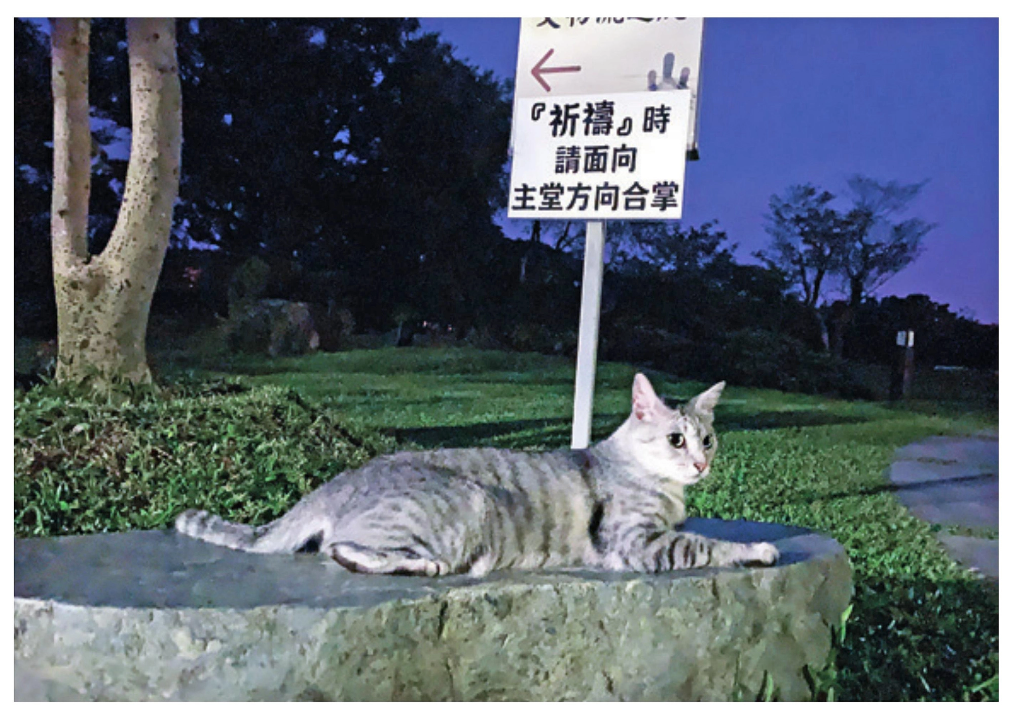靈巧的喵喵,與慈師父建立了深厚感情。「自從師父生病後,傍晚時常看見牠靜靜蹲臥在慈師父寮房外,像個稱職的守衛,時刻保護著主人。」陳貴珠說,即使後來慈師父住院,「牠也一如既往的在這裏等候老主人回來,直到如今。」