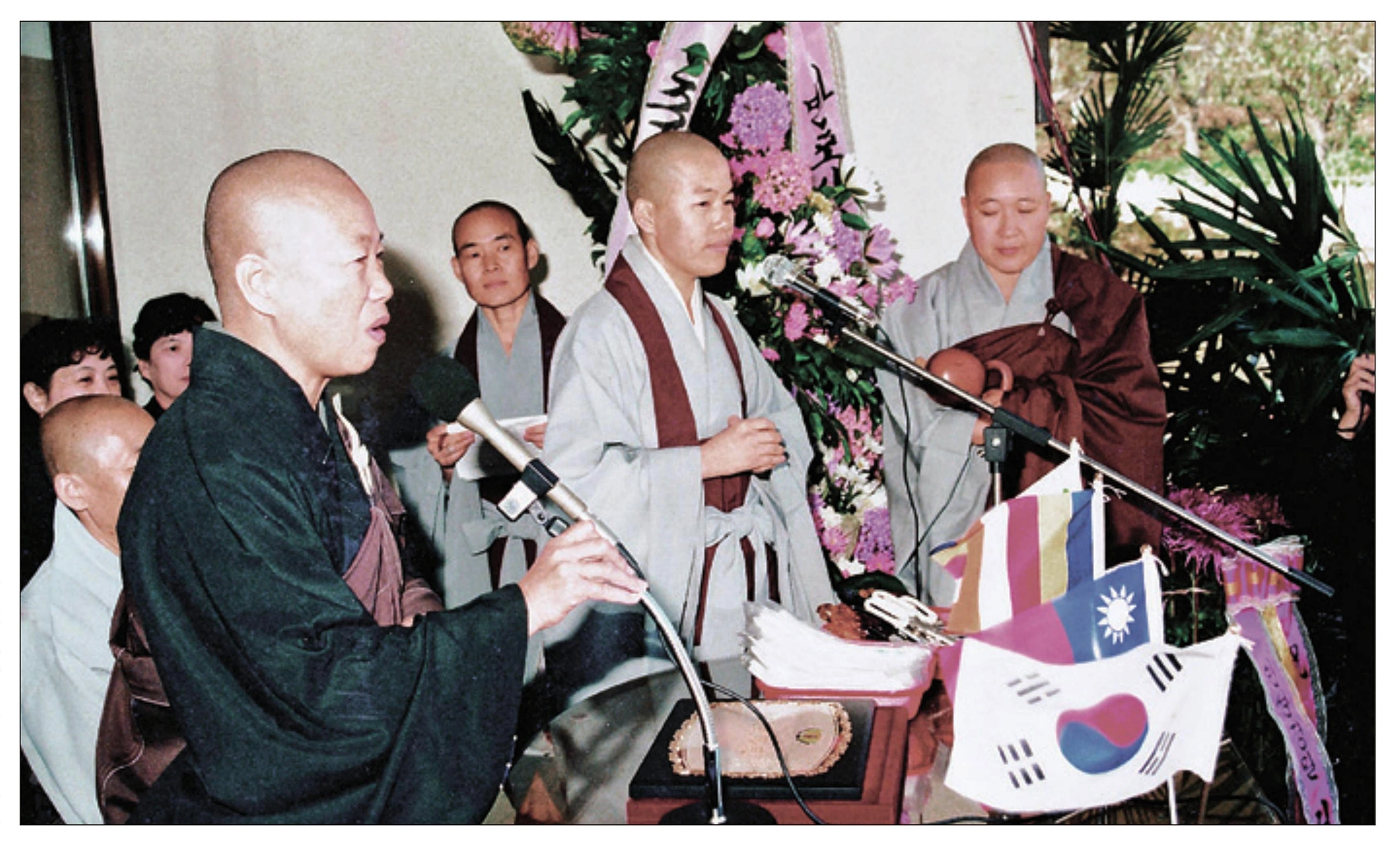 一九八六年韓國藥水寺與靜思精舍締結姊妹寺,住持妙喜法師決意弘揚慈濟精神,歷經五年終於建成專收殘障、孤老無依的養老機構──南陽養老院。慈師父代表上人前往參加啟用儀式。(攝影:黃錦益)