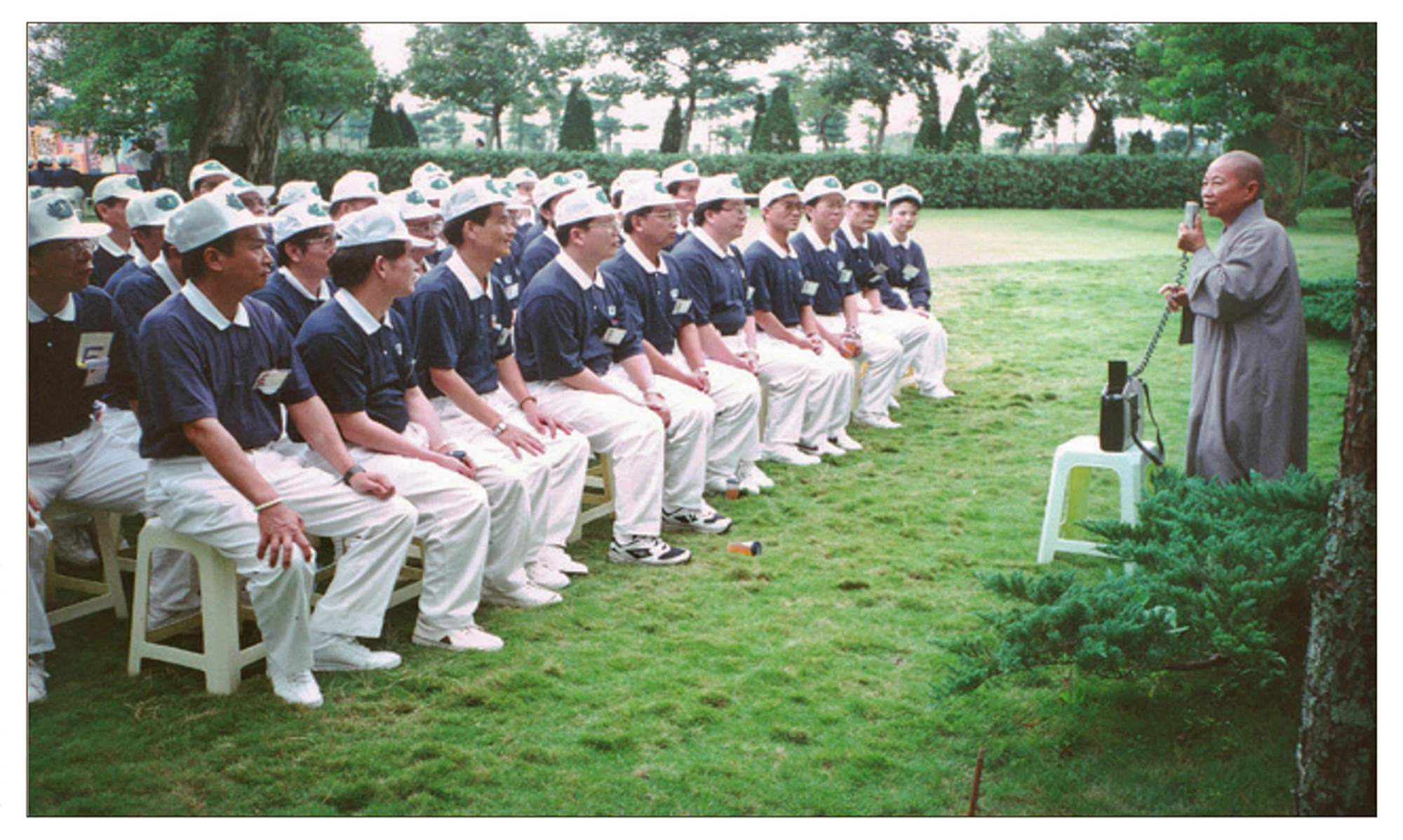1996年青年創業協會與新聞人員靜思生活營,學員仔細聆聽慈師父講古,深刻體會慈濟草創時期的艱辛。(攝影:黃秀花)
