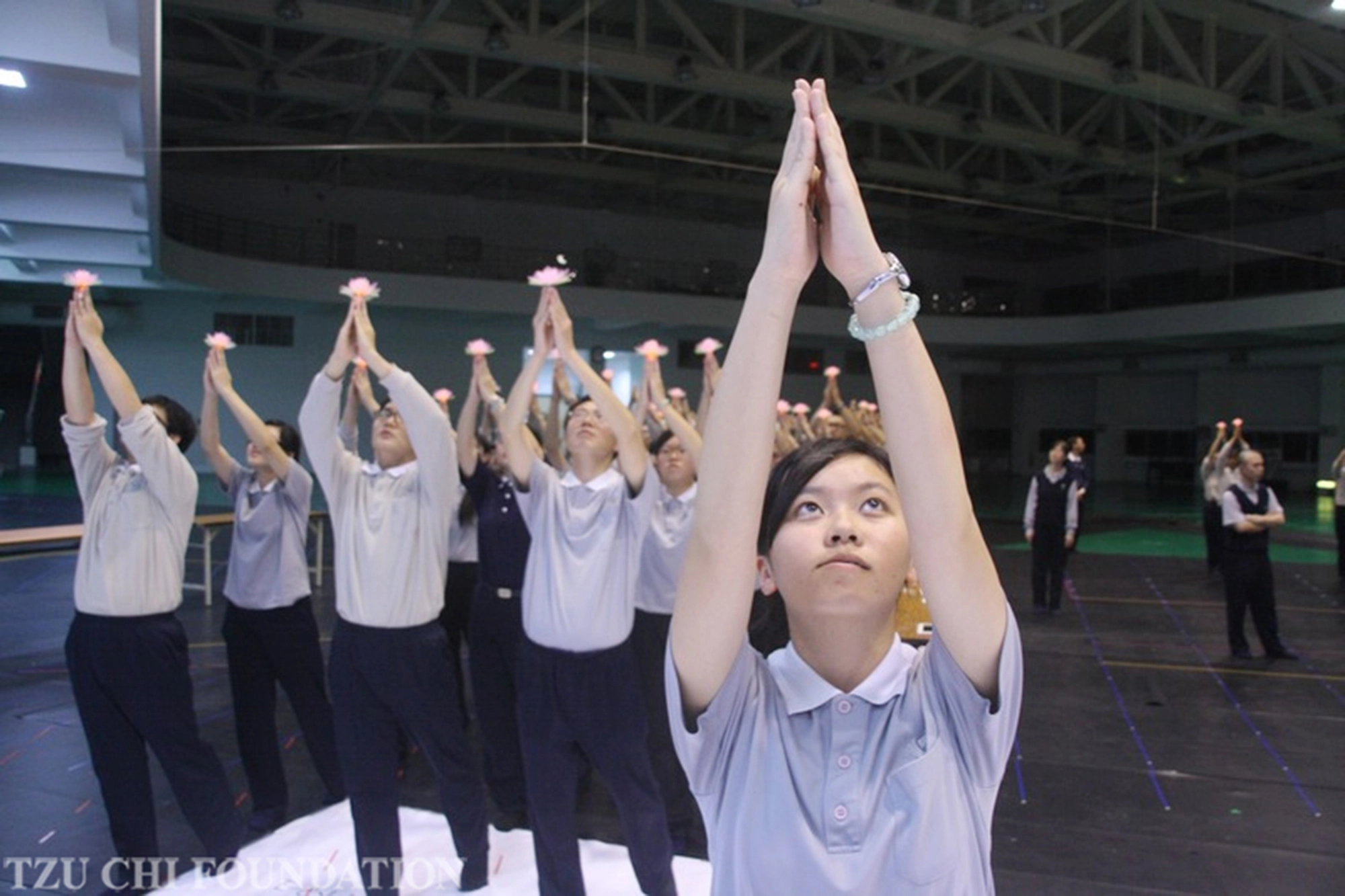 蘇筱雅(前)也是畢業於慈濟大學護理系,2012年參與《慈悲三昧水懺》經藏演繹彩排。(攝影:王麗珠)
