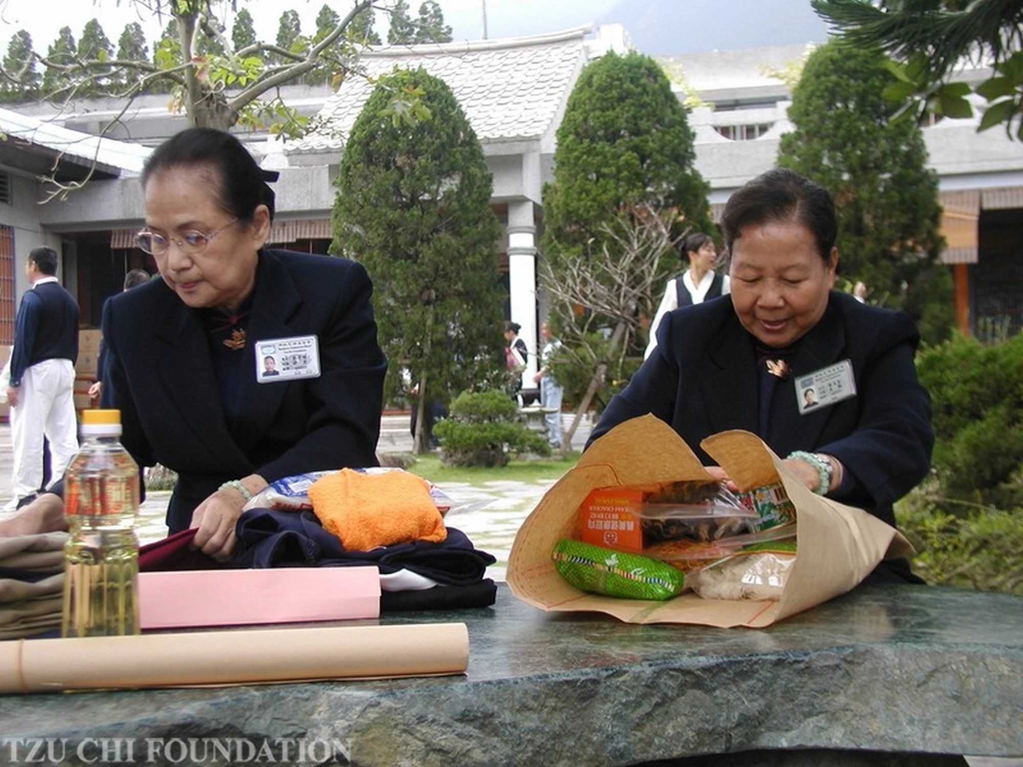 而1989年以前,冬令打包年貨物資更是年度大事,全省冬令發放物資都集中在精舍進行打包,委員們早在冬令發放前一個月即回到精舍協助,上人也會參與打包,親自示範。當時除了花蓮、玉里、臺東、屏東、臺北、臺中有定點發放,其他縣市及偏遠地區皆由精舍郵寄包裹。靜儷師姊回憶有一年回精舍打包冬令物資,上人拆開其中一個包裹重新打包,並以此教導大家:「包裹紮實嚴謹,讓收者滿心歡喜,也是結一份歡喜緣。何況經過長途運輸、郵寄,若是收者收到零零落落的包裹,沒有心生歡喜,使得全省愛心打了折扣,反而得不償失。」