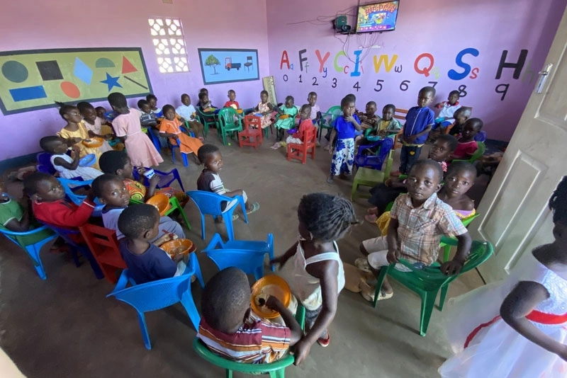 2022年的安娜氣旋後,由馬拉威本土志工自募自建,幫忙部落重建的供食幼兒園。(攝影:袁亞棋)