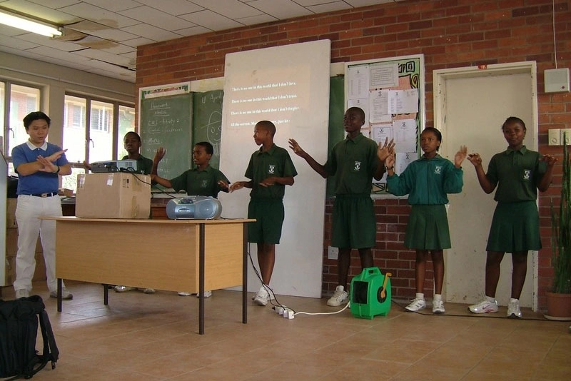 南非德本愛丁頓小學學生上台展現所學的手語。(攝影:廖玫玲)