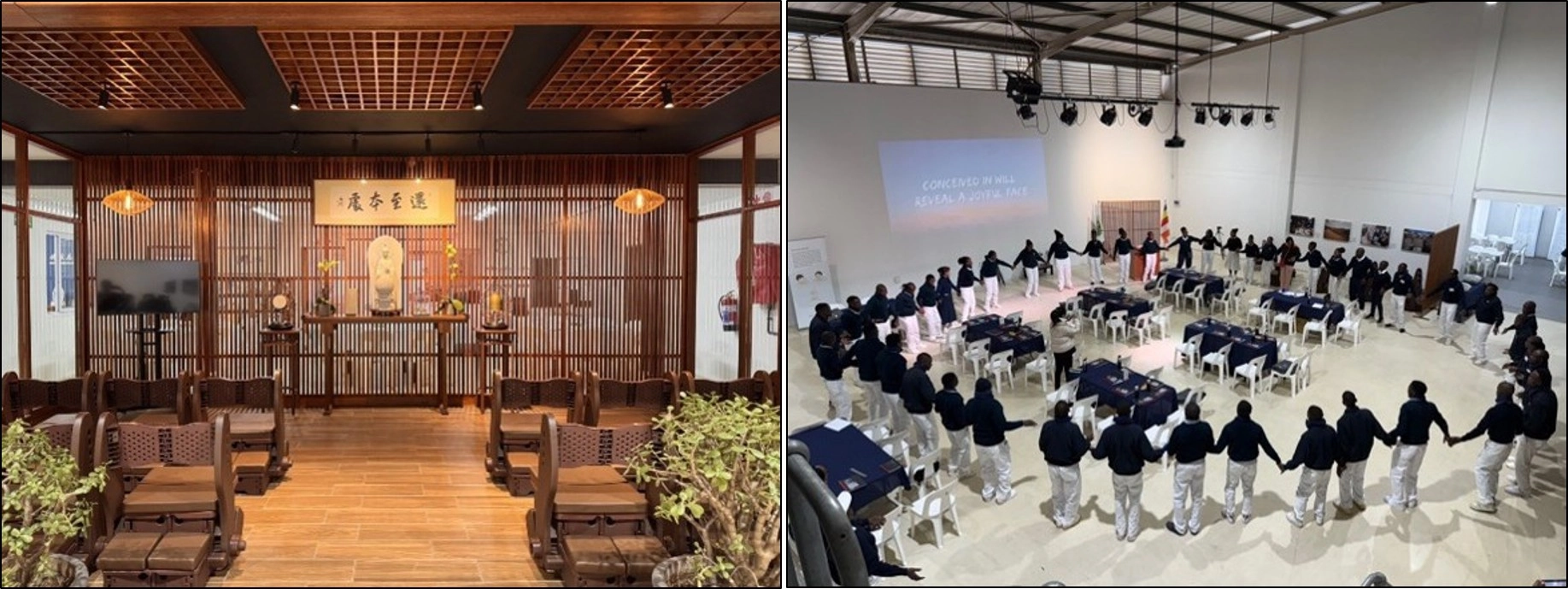慈濟德本會所前身為食品工廠,如今轉身為四百多坪的共修大空間,設有小佛堂與多功能活動空間。(圖片來源:擷取自南非簡報畫面)