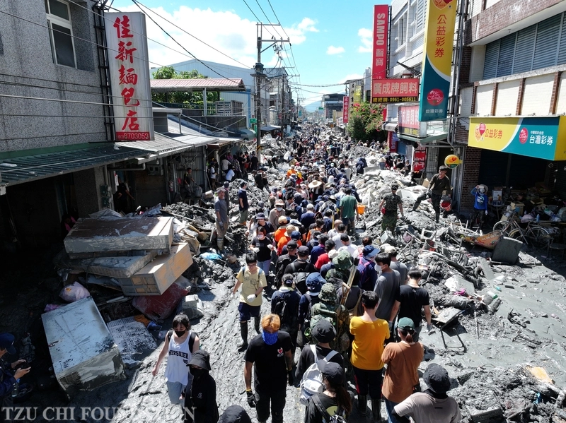 「這次的動員,可以看到臺灣的希望,幾乎都是年輕人,而且全副武裝,自備打掃工具,一應俱全。」德柔師父也被一幕幕的景象所感動:「火車站,雖然水洩不通,但是井然有序,沒有爭先恐後,沒有抱怨,人人非常自律、守規矩;火車裡,人人魚貫進入,自動挪個位、轉個身,讓人人都有付出的機會。」而清淤現場,沒有喇叭聲,沒有吵雜聲,就只有山貓、大卡車穿梭的聲音。