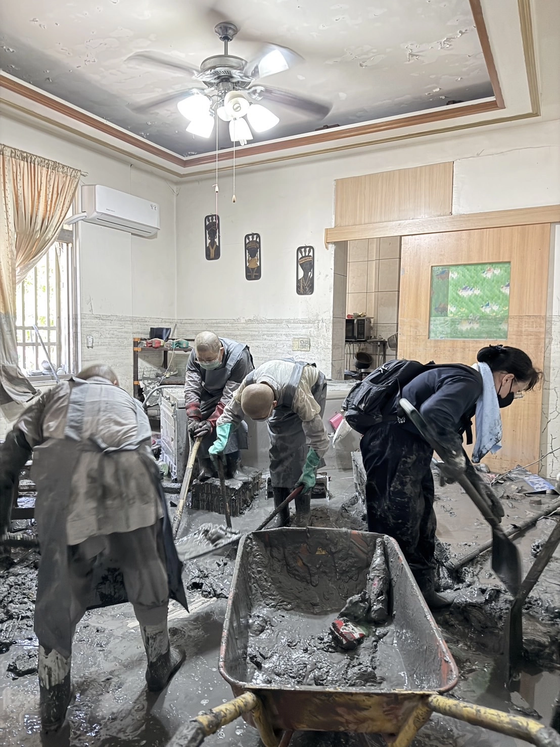 光復慈濟據點水患後受創嚴重,幸有一批批的年輕人加入,讓大家更安心,也相信「慈濟人的家」是全天下的家。(攝影:陳碧玉)