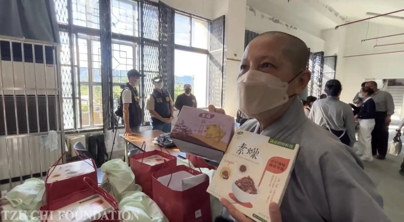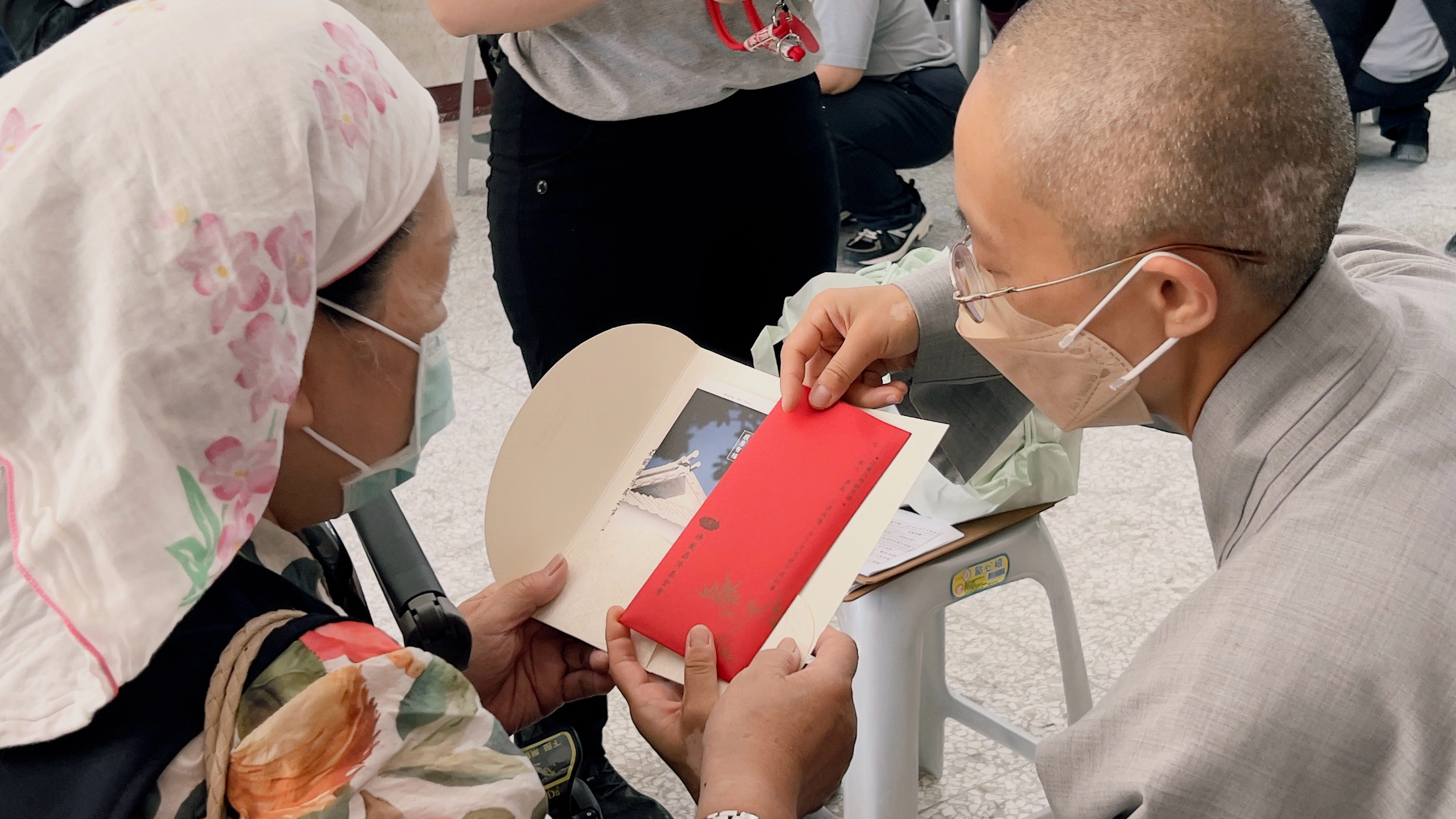 中秋節連假,靜思精舍師父發放慰問金暨安心祝福禮,陪伴受災鄉親度過難關。(攝影/廖文聰)