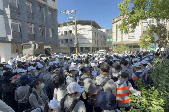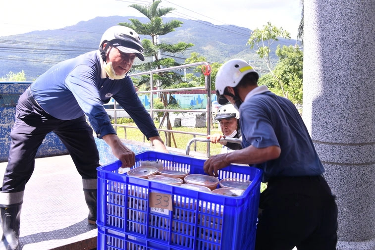 受樺加沙颱風外圍環流影響,引發馬太鞍溪上游堰塞湖壩頂溢流,各地青年志工與慈濟志工一同前來協助清掃。(攝影:凌翠蓮)