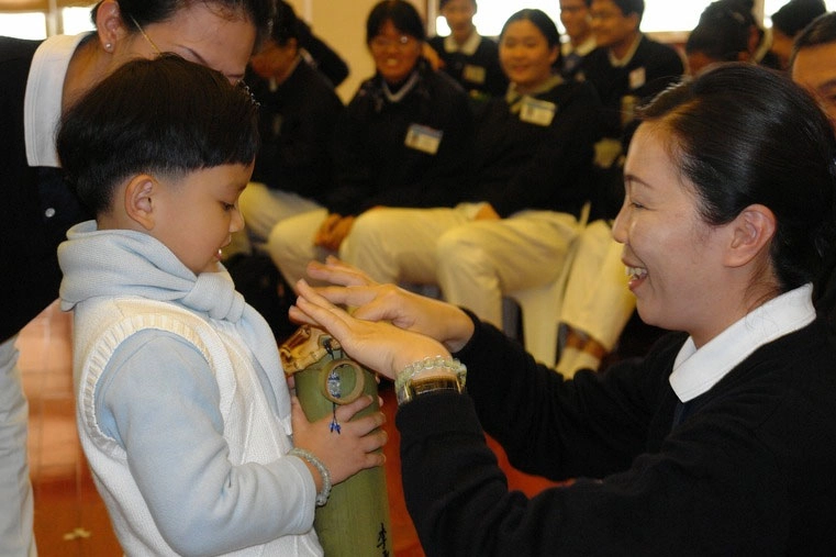 「師公,早!」承諺把幼稚園「不乖,大野狼就會來」的話題延伸到上人面前:「我唱《無量義經》給您聽,大野狼就不會來了。」