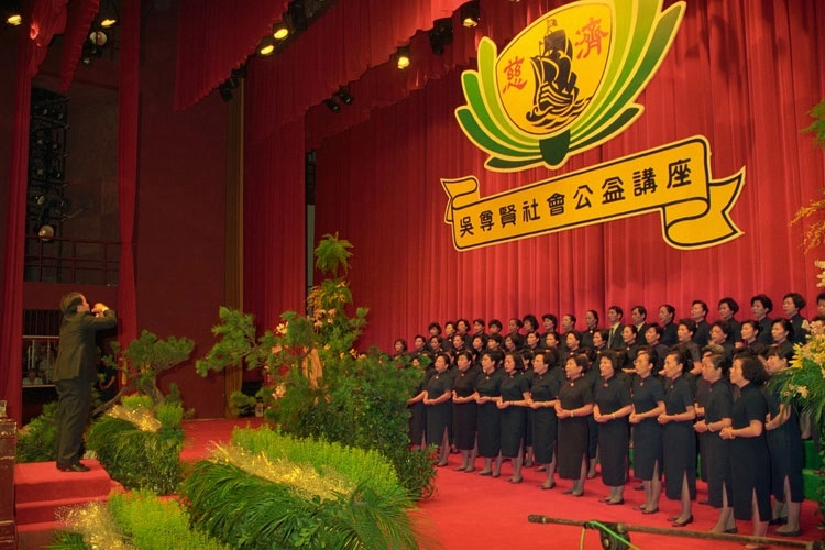 吳尊賢文教公益基金會舉辦「吳尊賢社會公益講座」,證嚴上人應邀巡迴演講,於台北國父紀念館展開第一場(首場)演講。師姊們進行合唱表演。(攝影:洪斯文)