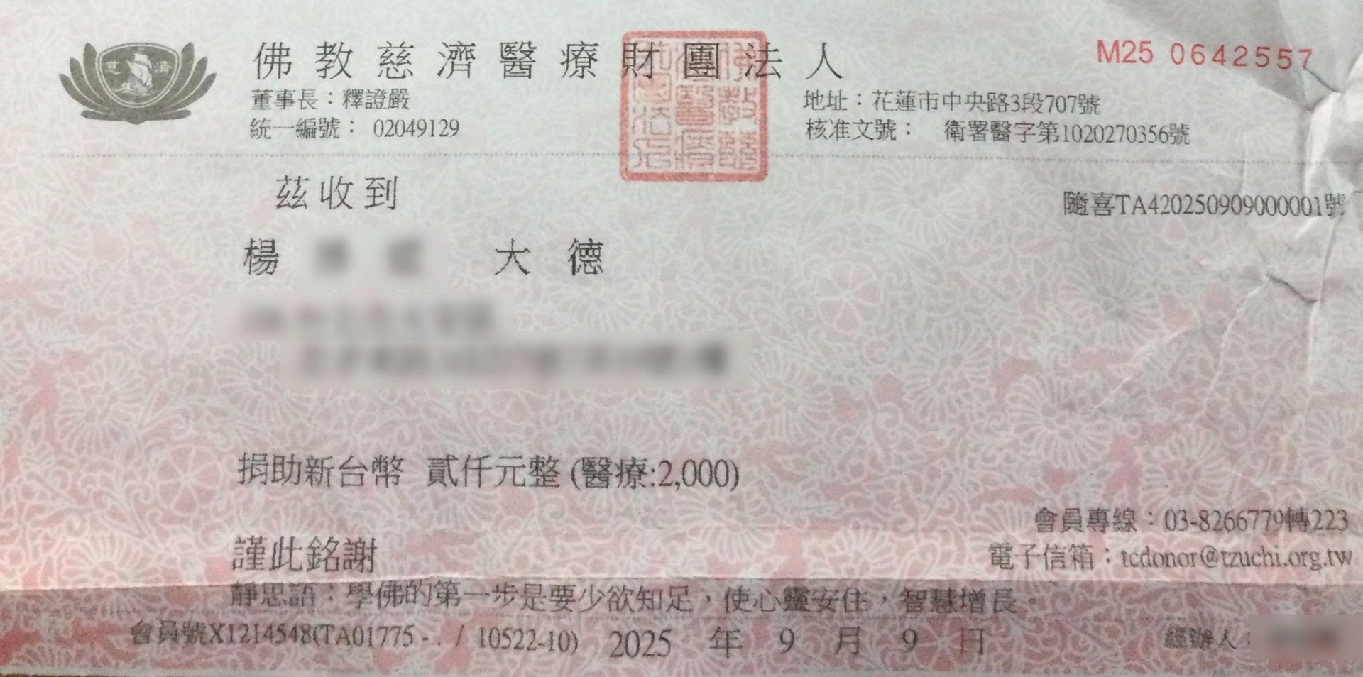 父親往生後,我在整理東西時,翻出一張捐慈濟「醫療」的收據,喚起了我與慈濟的因緣。