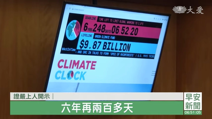 上人以氣候時鐘為例,叮囑暖化加速,更要把握分秒,茹素、環保,用真實行動愛地球。(圖片來源:大愛新聞擷取畫面)