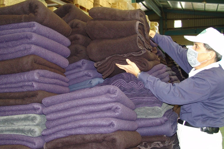 台北市內湖聯絡處加緊製作「南亞地震海嘯」賑災物資,兩萬件毛毯預計十天內完成,送往斯里蘭卡與印尼亞齊省。(2004/12/28;圖片來源:花蓮本會提供)