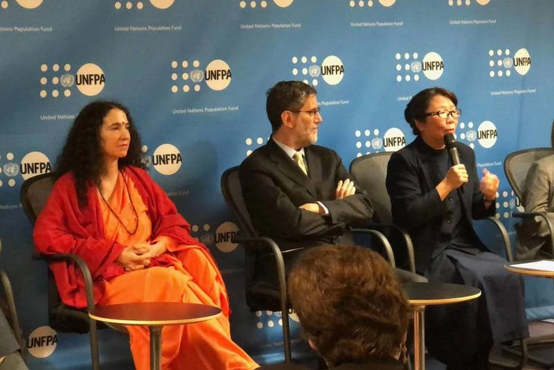 「聯合國信仰組織評議會」於美國紐約成立,慈濟以不分宗教、國界的人道行動,展現大愛共伴精神;慈濟美國總會副執行長曾慈慧師姊(右一)代表出席。(2018/09/21;圖片來源:聯合國人口基金會提供)