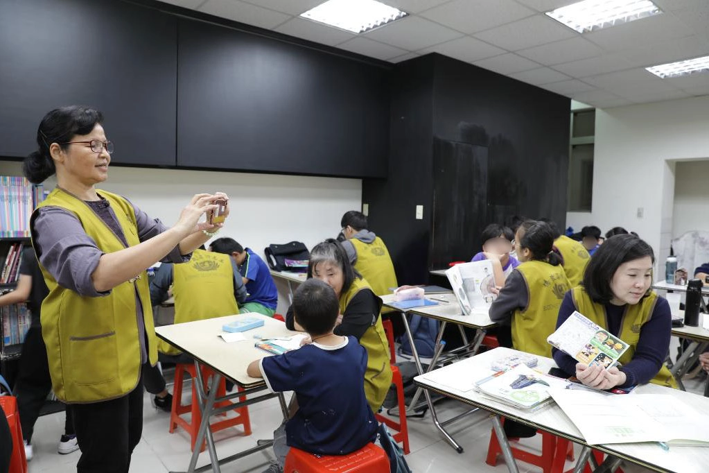 江柑師姊(左)就像媽媽一樣,照顧每一個人,時常為課輔班的孩子、志工哥哥姊姊留下身影。(攝影:楊麗祺)