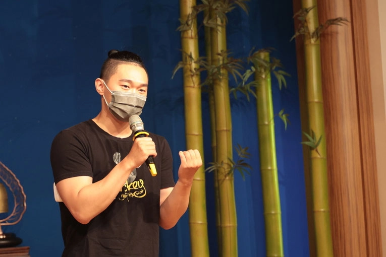 早期課輔班學生博葦分享,他生命中遇見無怨無悔付出的人,第一位是母親,第二位是江柑師姑,她以無所求的愛默默陪伴並支持著他。(2022/07/23;攝影:陳何嬌)