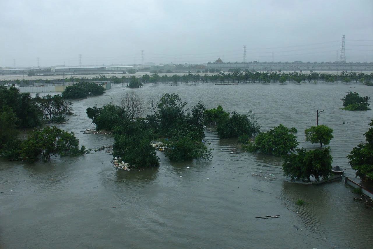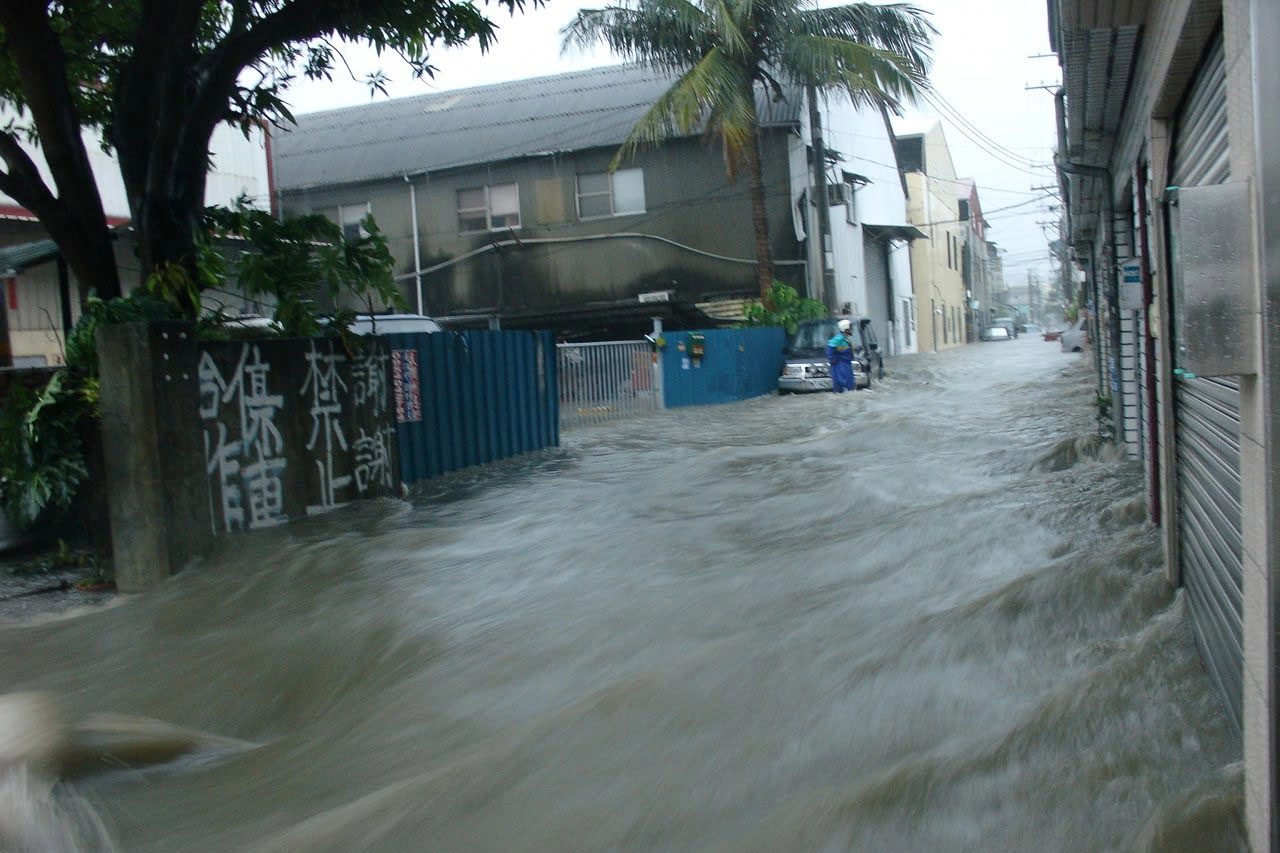 麻園頭溪、筏子溪、大里溪與柳川溪水位暴漲,重創大街小巷。(攝影:陳榮豐)