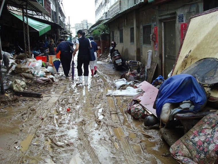 當天早上,施香蘭像往常早起,梳洗後準備下樓運動。不料右腳還沒踩到一樓地面,就碰到冰冷的水。她立刻呼叫先生:「起來,起來,我們家淹水了!」夫妻試著打開鐵門,大水迅速將一樓的家具全沖到外面。