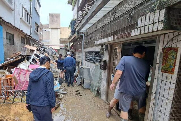 受鳳凰颱風外圍環流及東北季風共伴影響,宜蘭縣蘇澳鎮11月11日晚間發生嚴重淹水災情,慈濟志工協助鄉親清掃住家。(2025/11/13;攝影:廖月鳳)