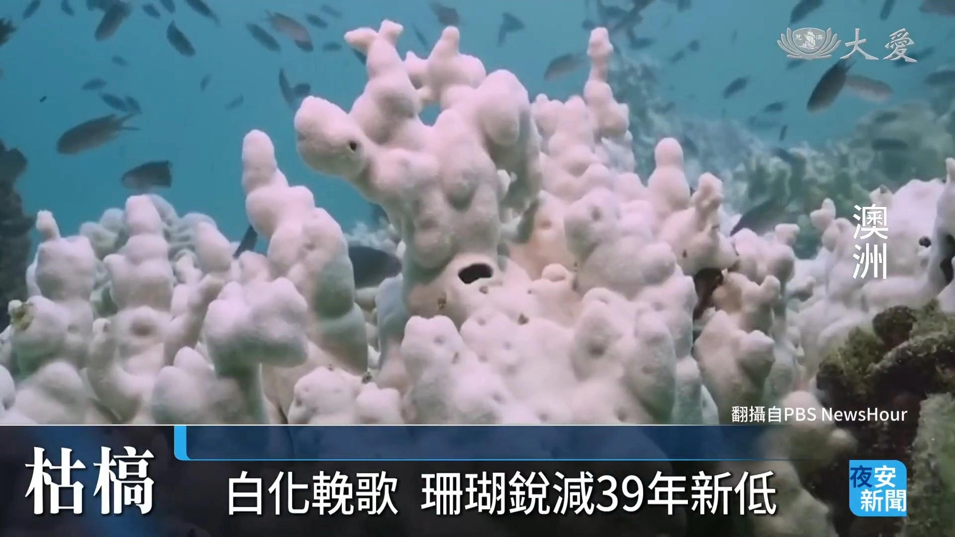 長時間沒有颱風時,海水表面溫度持續升高,容易造成珊瑚大量白化與死亡。(圖片來源:大愛新聞擷取畫面)