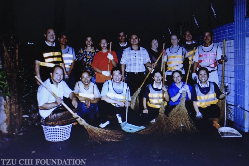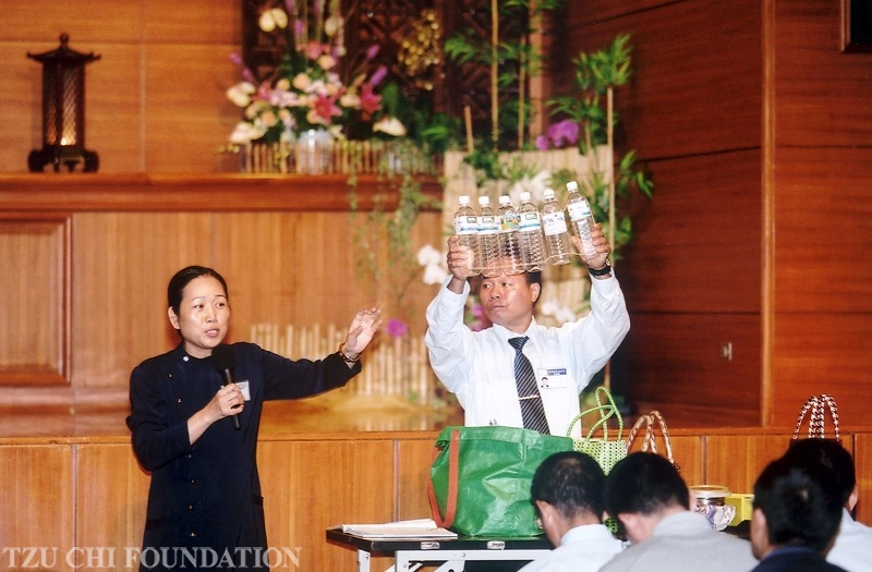 1990年8月23日,在臺中新民商工舉辦的「吳尊賢社會公益講座」中,上人以「用鼓掌的雙手做垃圾分類」為題,開啟慈濟環保。隔天,慈濟志工黃翠玉便走入垃圾堆,開始尋找可回收的資源。兩個月後,她更逐戶按電鈴,請大家將可回收資源送到她家。
