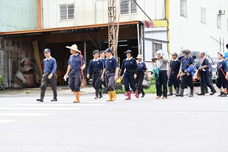 南投縣草屯鎮南埔里豪大雨水災關懷,許昆龍召集社區志工八十多人,帶著打掃工具徒步前往南埔里協助清掃整理。 (攝影/張文聰)