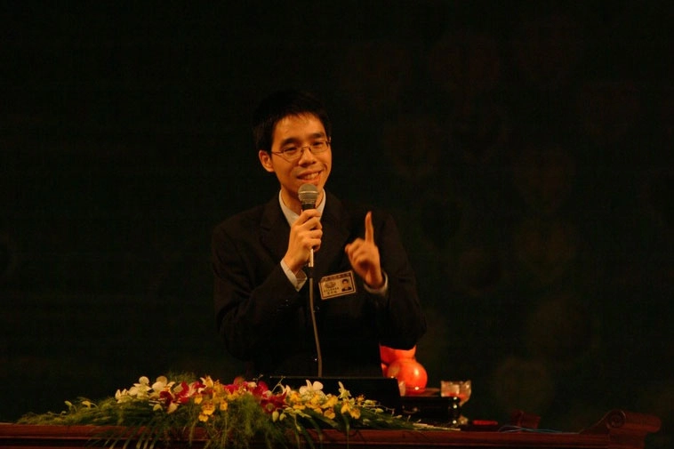 上人提醒清修者應具備赤子之心、駱駝的耐心,以及獅子的勇猛心。葉秉倫於花蓮「傳承靜思法脈,弘揚慈濟宗門」志業體同仁精進研習營分享清修志行。(2007/11/11;攝影:劉文景)