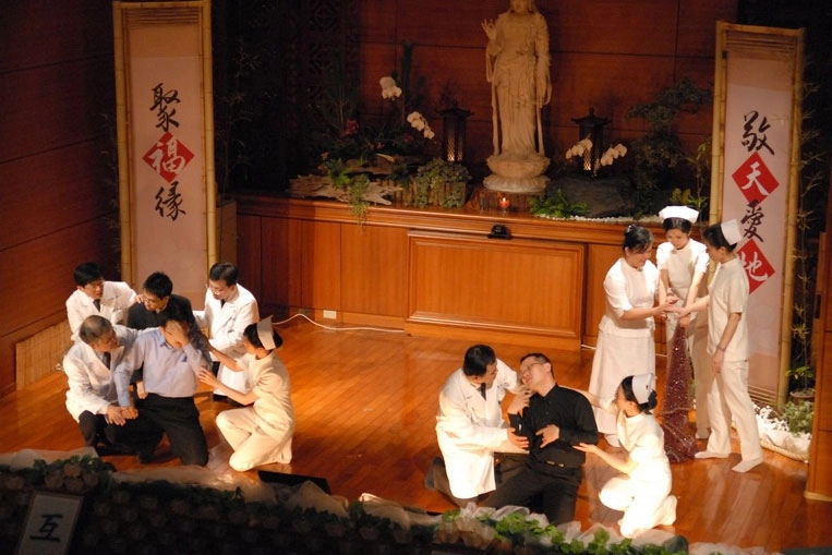 中區最後一場歲末祝福於2008年1月18日圓滿。演繹經藏的大醫王和白衣大士來到台中分會夾層向上人告假,其中一位穿短袖的白衣大士坐在上人面前,上人關切地問:「不冷嗎?不要感冒了!」