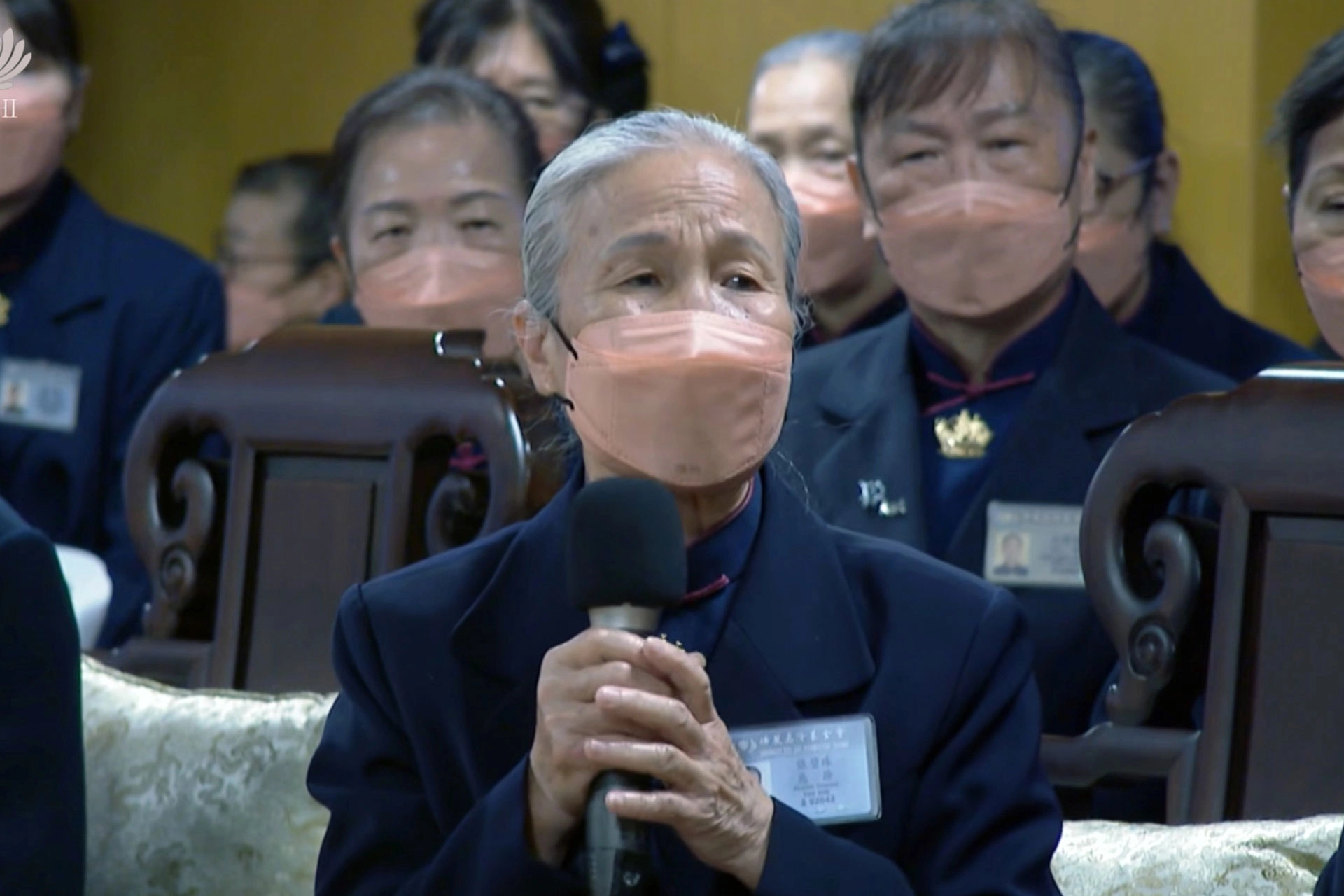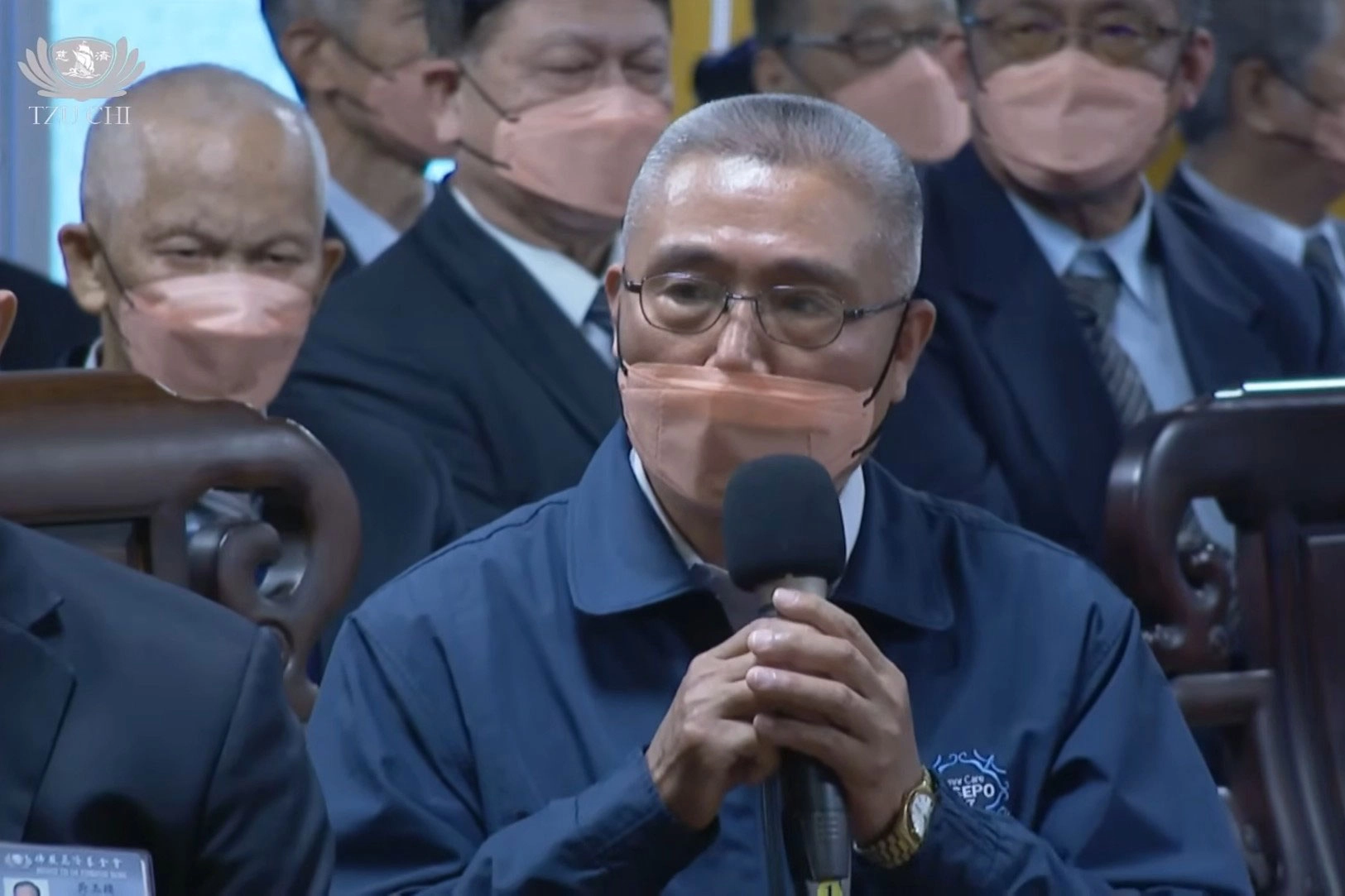 時隔十八年,當年后豐斷橋災難現場的指揮官柯進福來到溫馨座談會中,感恩上人帶領慈濟志工在風雨交加的時刻,給予溫暖和依靠。(圖片來源:螢幕擷取畫面)