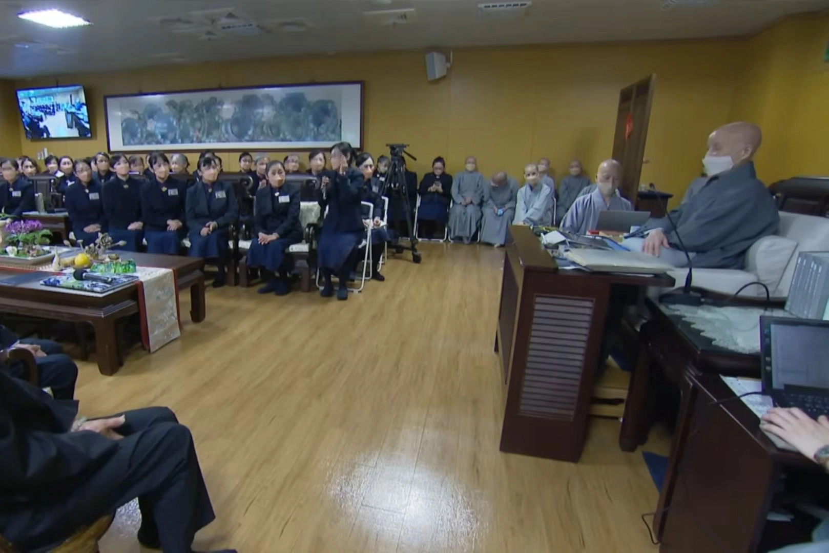 上人在溫馨座談中慈示,國際間苦難頻仍;當苦難現前,有因緣者就應發心立願,前往海外救拔苦難與付出,也藉此在不同國度行菩薩道。(圖片來源:螢幕擷取畫面)