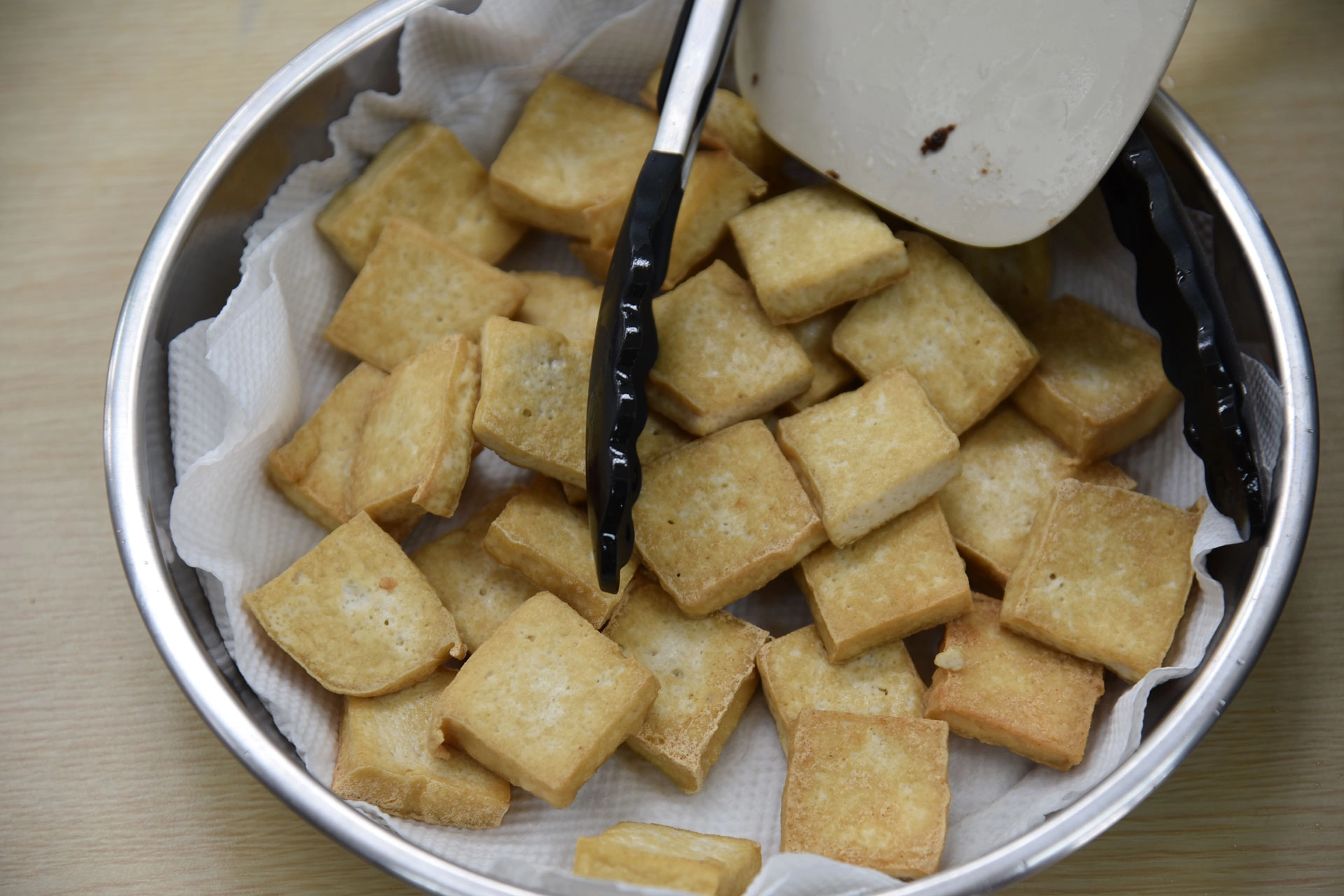孩子們準備師公飯、煎鹹豆腐,體會上人克苦、克難、克勤、克儉的精神。(攝影:郭美秀)