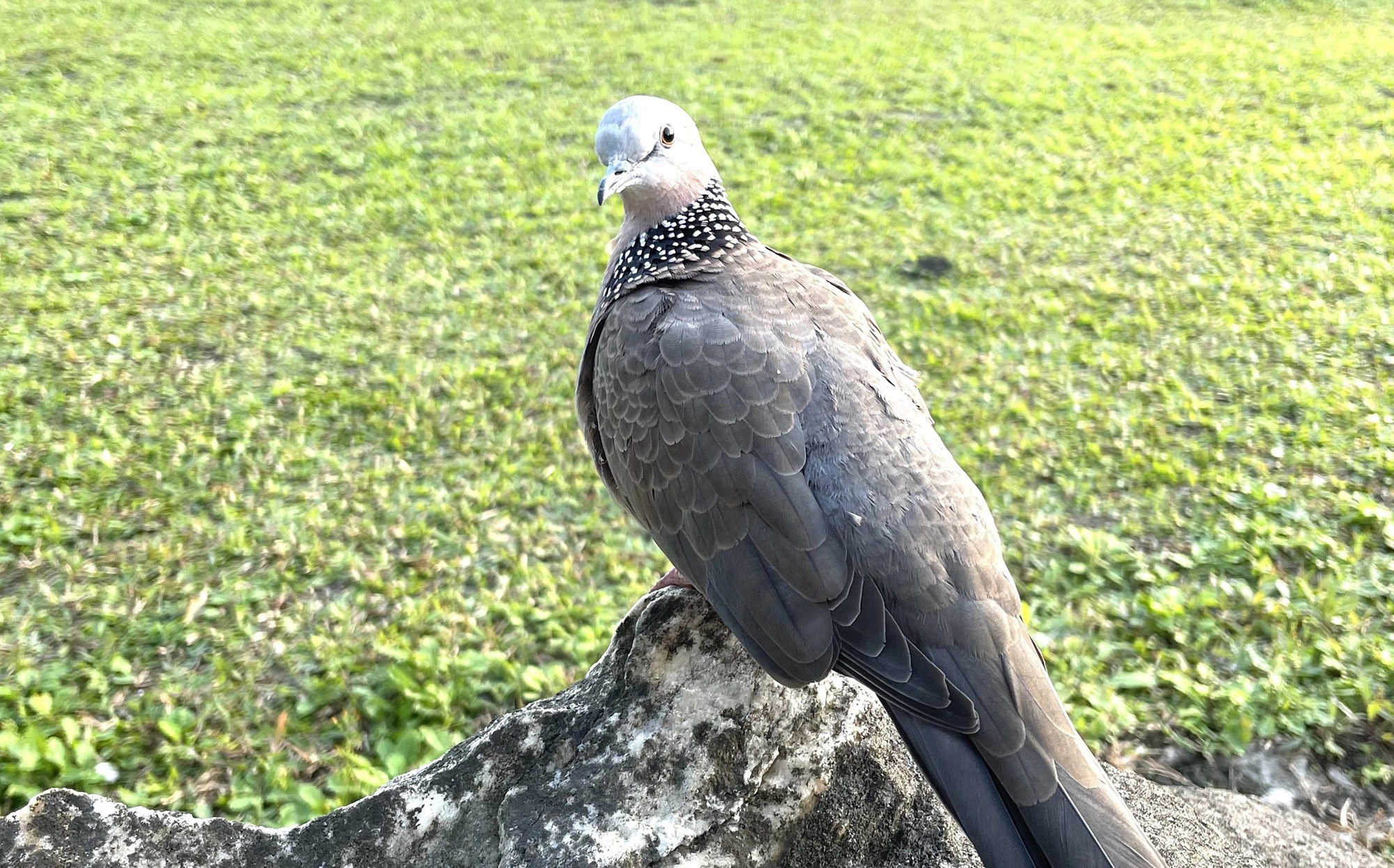 「感恩」是隻珠頸斑鳩,牠在二O二四年八月底的一個颱風過後,被一位師兄撿到。
