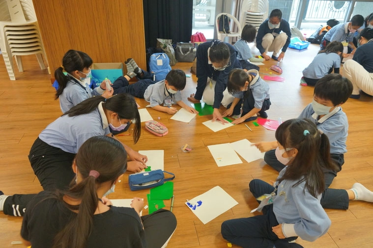 臺中靜思堂兒童親子成長班,隊輔媽媽親切招呼孩子們圍坐成圈,一起動手創作名牌。(2022/03/27;攝影:許順興)