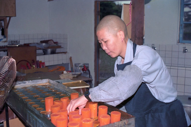 靜思精舍常住生活,德安師父製作蠟燭。(攝影:黃錦益)