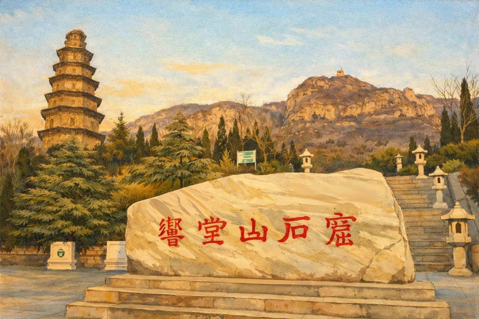 響堂山規模廣大,分為北響堂與南響堂。其整體風格,與龍門、雲岡二窟多呈現佛經、經變與佛傳故事的風格迥異,開鑿時間也略晚。