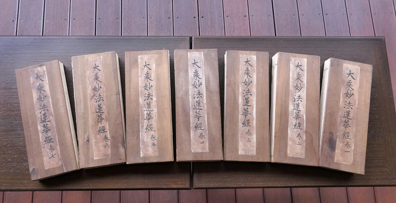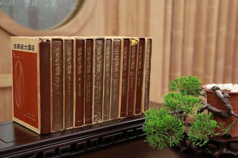 1960年,上人在台東馬蘭糖廠王耀民課長家看到此套書,其中第一冊即是《無量義經》。據上人親述,因早期經常翻閱此書,久而久之導致書背字樣消淡掉。(攝影:詹進德)