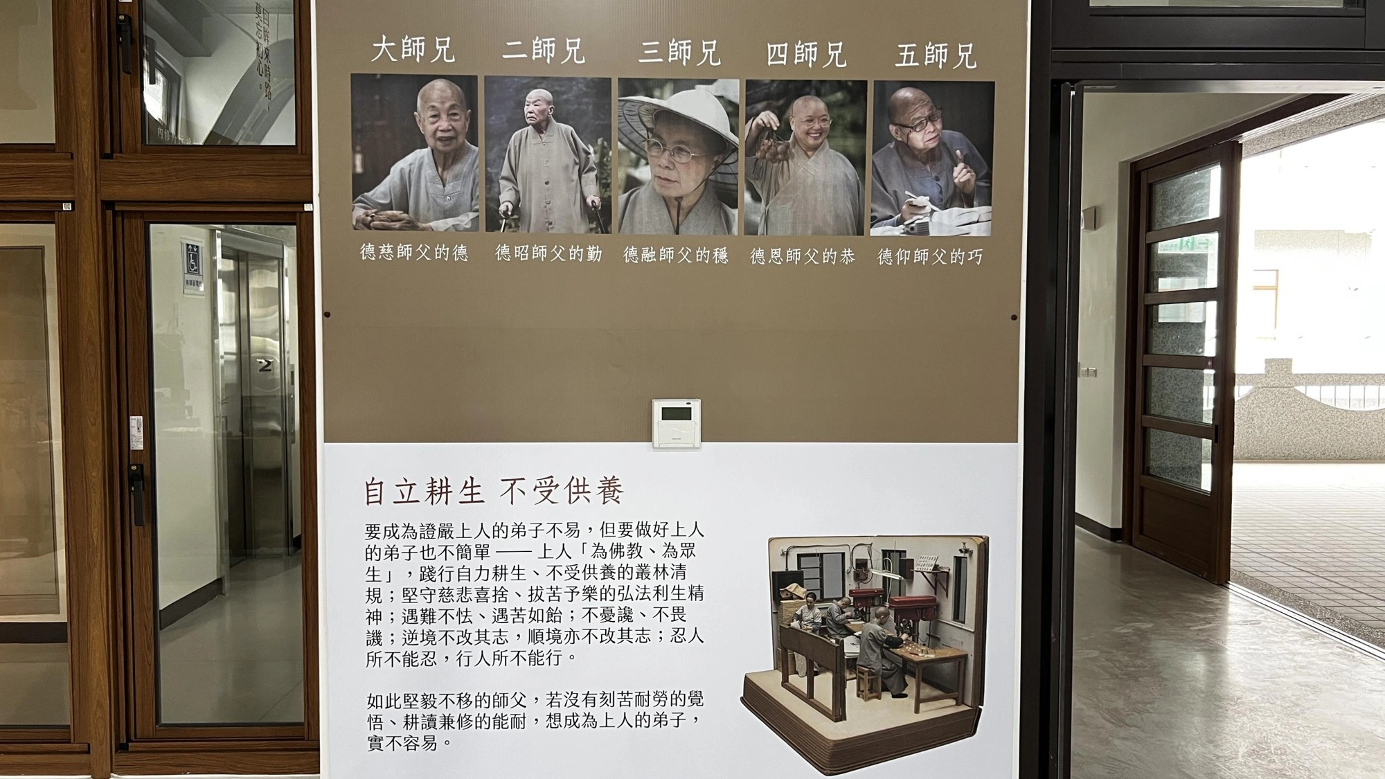 *大師兄德慈師父:慈悲且多才多藝,以「德」服人,協助管理家務,是眾人尊敬的典範。