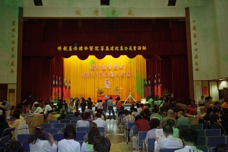本會為籌募慈濟醫院建院基金,首次舉辦大型義賣活動,各界善心人士捐贈珍寶、書畫,並有影視紅星熱心義賣,場面熱烈感人。(1983/11/06;圖片來源:花蓮本會提供)